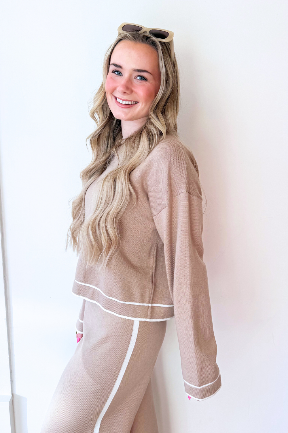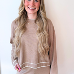 The Line Detail Sweater is a modern take on a cozy classic. Designed with subtle contrast line accents, this sweater adds just the right amount of detail while keeping a clean, minimal look. The relaxed fit makes it comfortable for everyday wear without feeling bulky. Easy to style with denim or paired with matching bottoms for a polished set.