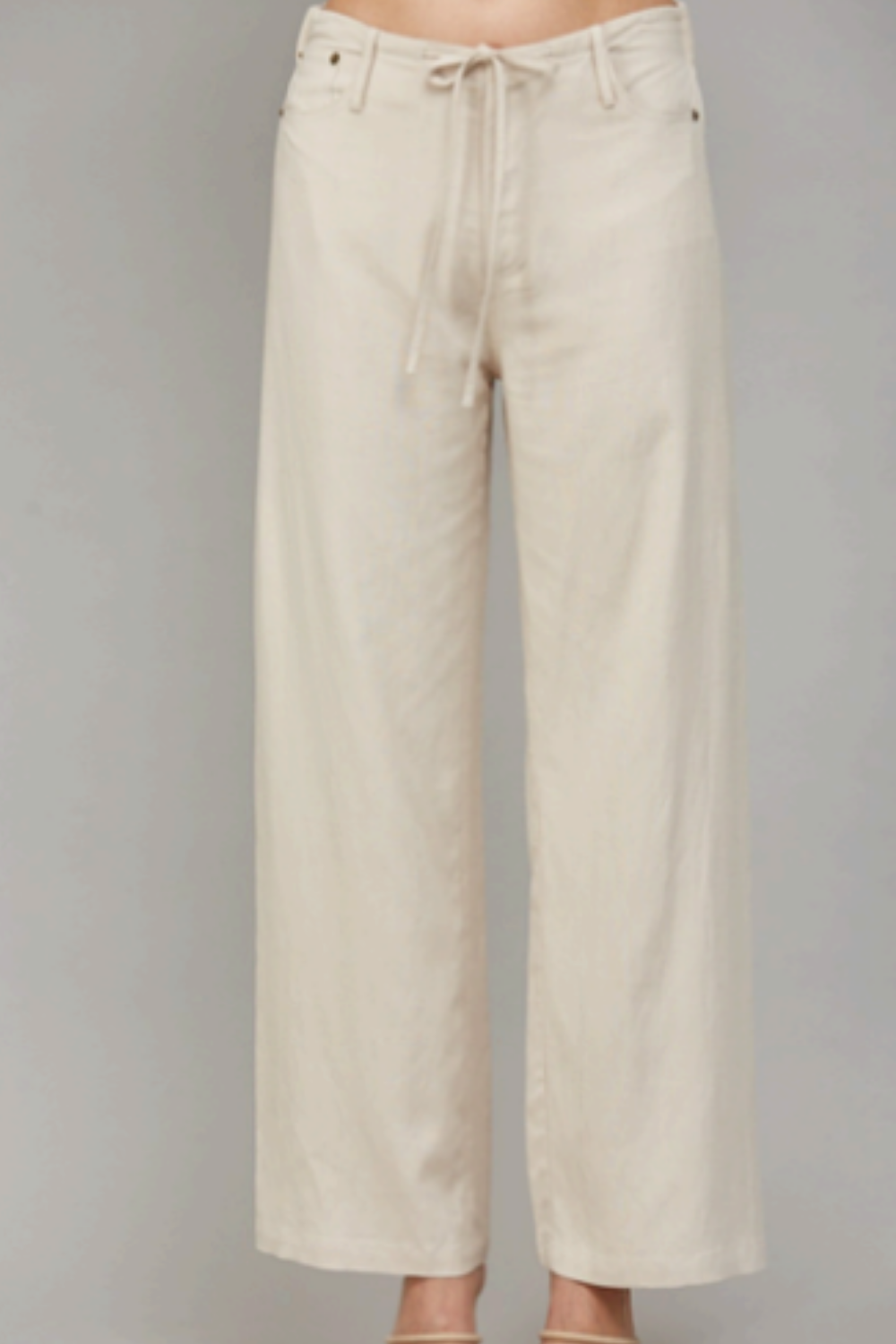 Linen Blend Drawstring Waist Wide Leg Pants