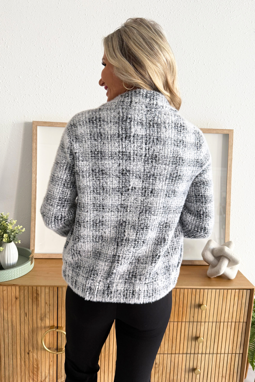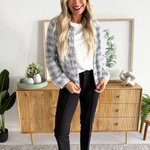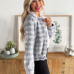 A fun take on a classic, this Collared Bomber Sweater Jacket is the perfect piece for your fall wardrobe! The front button jacket lays perfectly over basic tops or blouses for an easy yet put together look! Pair with denim or tailored trousers and heels for a night out!