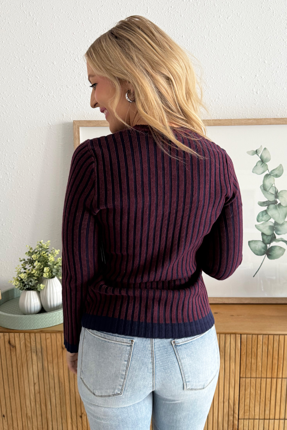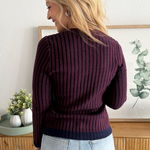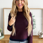 Classic knitwear, modern detail. This ribbed crew neck sweater is accented with contrasting colors for a refined twist on a timeless silhouette. Pair back to denim or a tailored trouser for endless styling options!