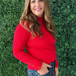 Long Sleeve Mock Neck Knit Top w/ Button Detail