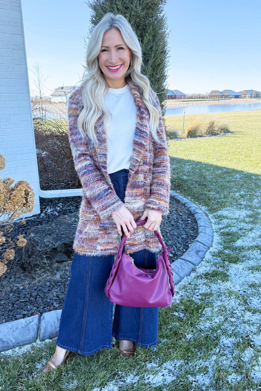 A modern hybrid you'll reach for again and again! This open front coatigan sweater features a textures feather knit, a soft shawl collar, and hidden pockets for functionality with flair. The perfect balance of cozy and refined.