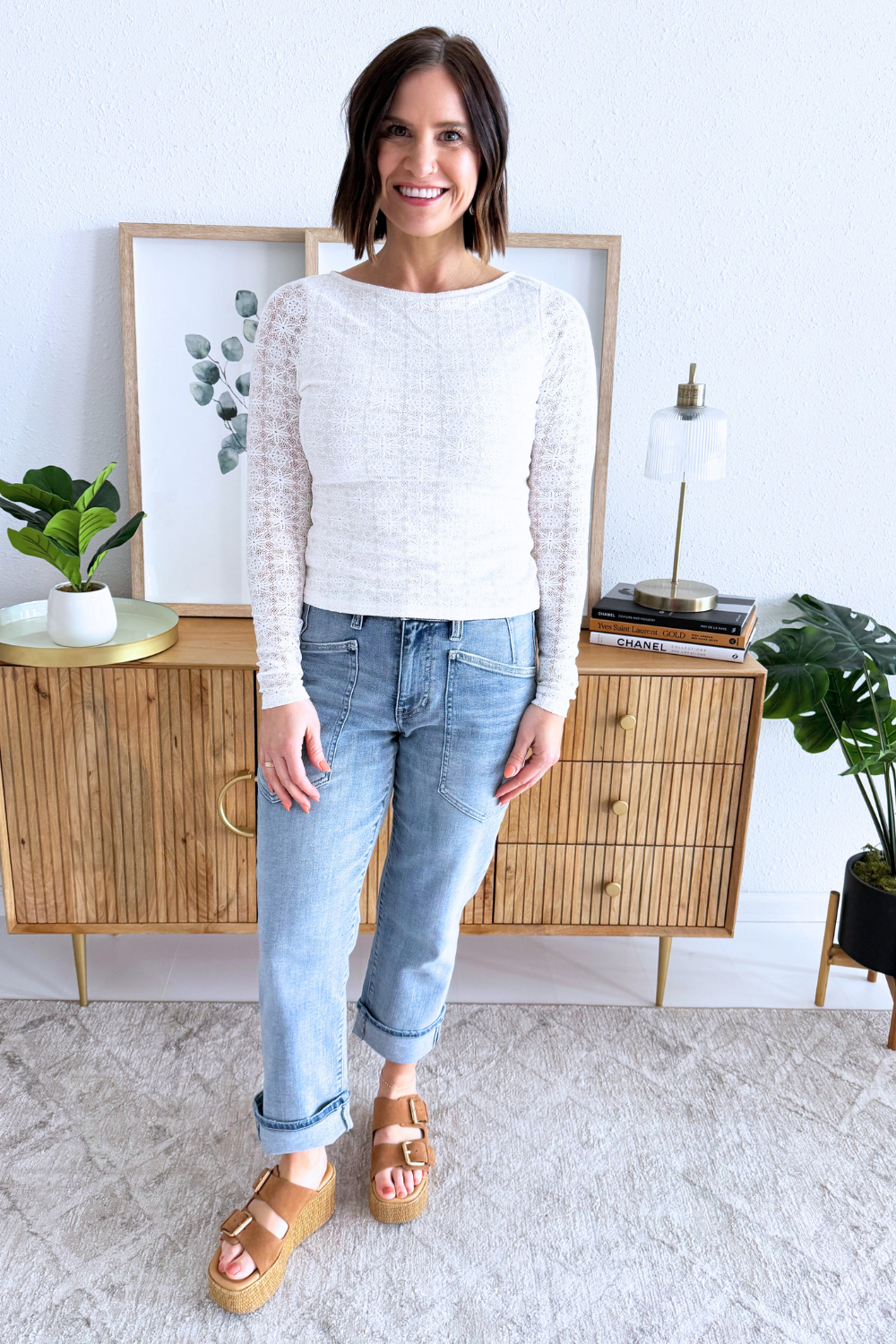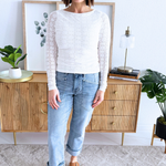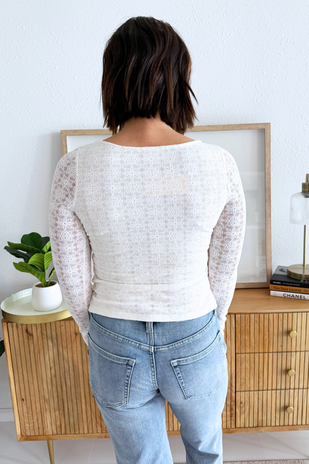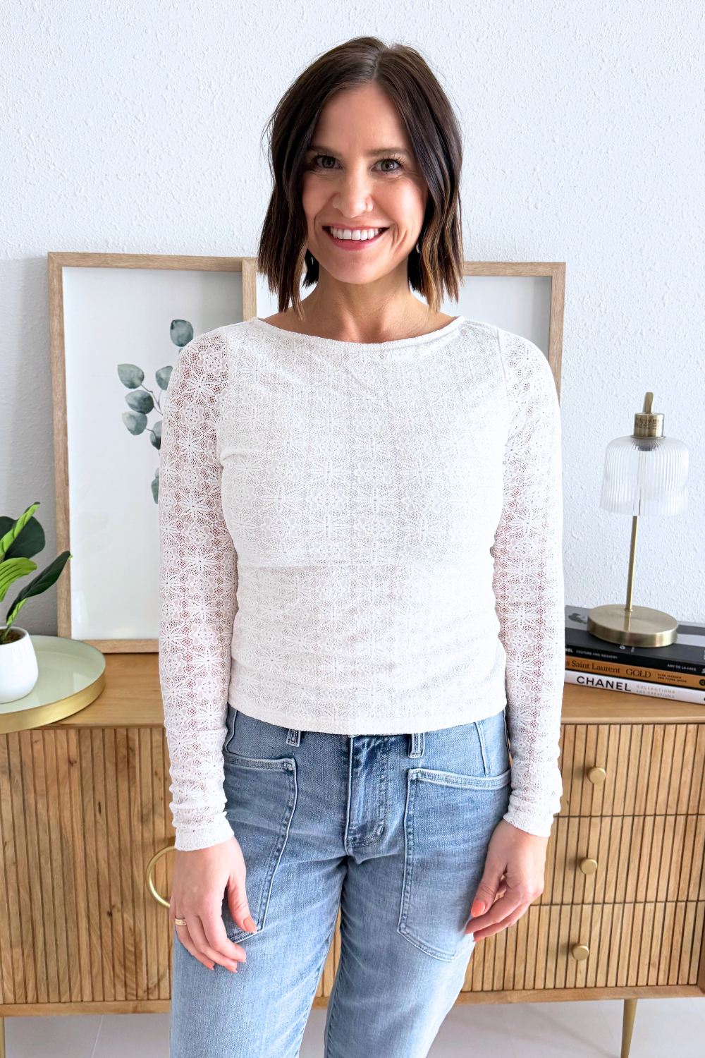 This long sleeve patterned top features an off white base with subtle detailing that gives it an effortlessly polished look. Designed to be both versatile and flattering, it transitions seamlessly from workdays to weekends. The lightweight fabric makes it comfortable for all-day wear, while the long sleeves offer easy layering for any season. Pair it with denim for a relaxed outfit or style it with tailored pieces for a more elevated feel.