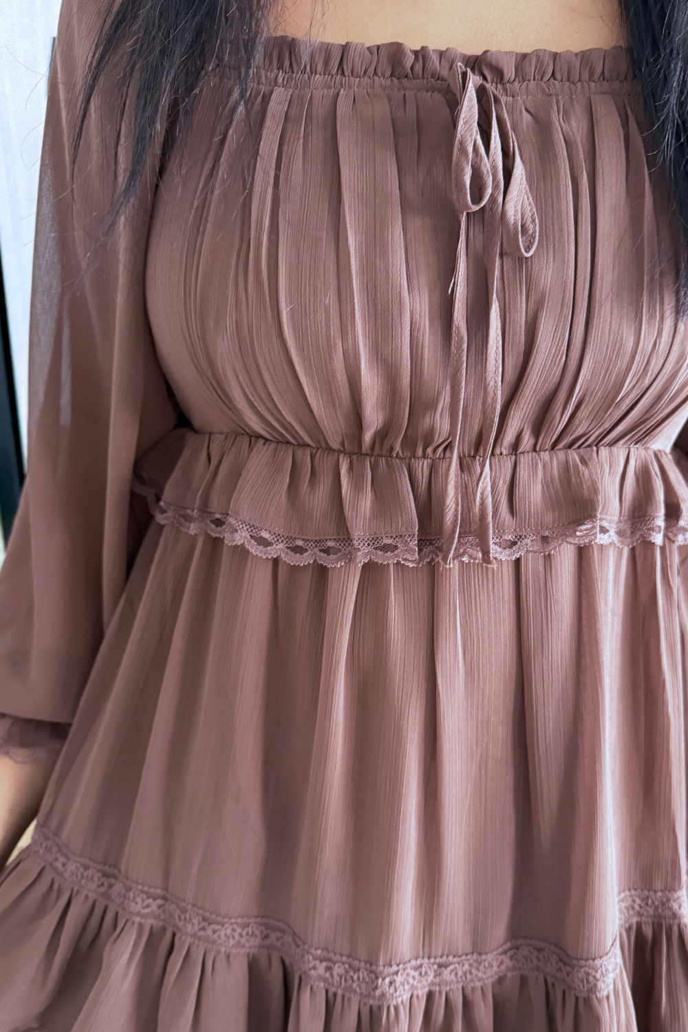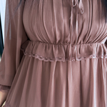 This stunning Long Sleeve Tiered Tie Front Dress is the perfect chocolate shade for any season. With long sleeves and ruffle details, this dress is flirty and can be dressed up or down. Style wit sandals and a denim jacket for a casual brunch and heels for church.