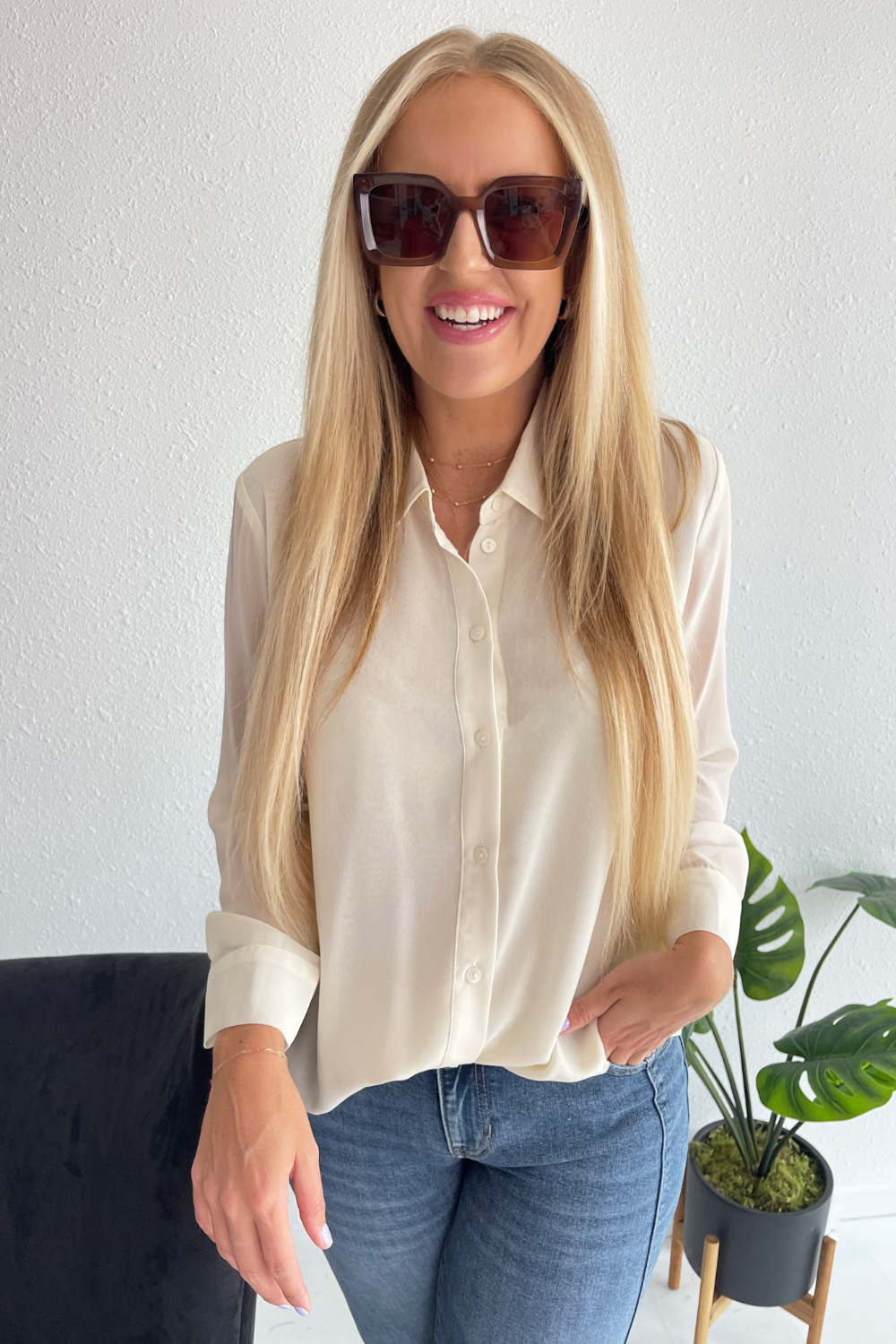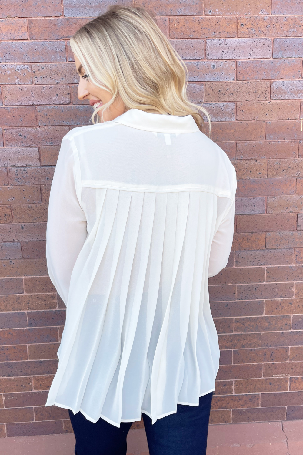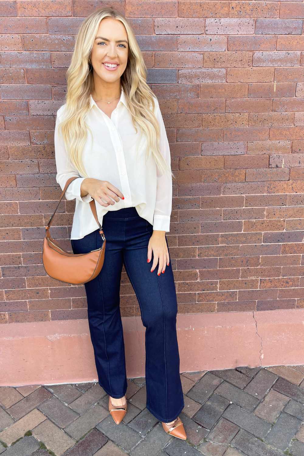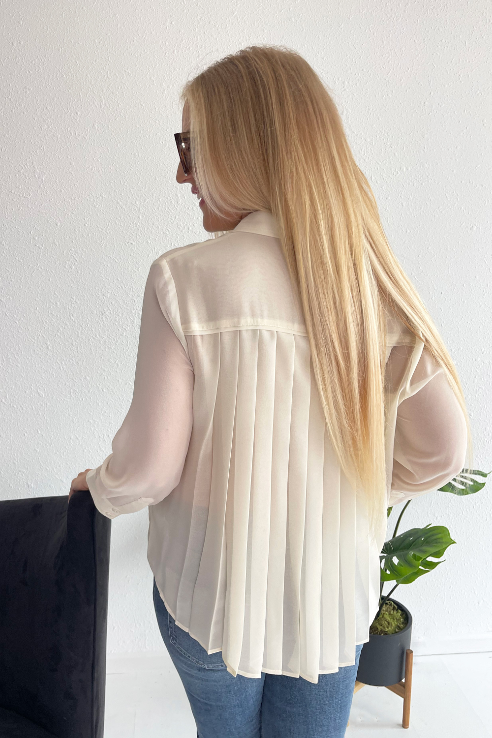 This chiffon blouse from Liverpool can be dressed up or down effortlessly. Back pleat details elevate this top making it your new favorite fall wardrobe staple.