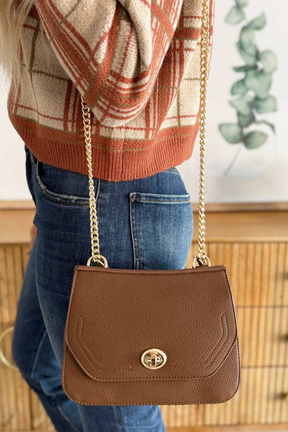 With its clean structure and gold-tone hardware, the Lottie Twist Lock Crossbody Bag brings polish and practicality to any outfit—perfect for day or night wear.