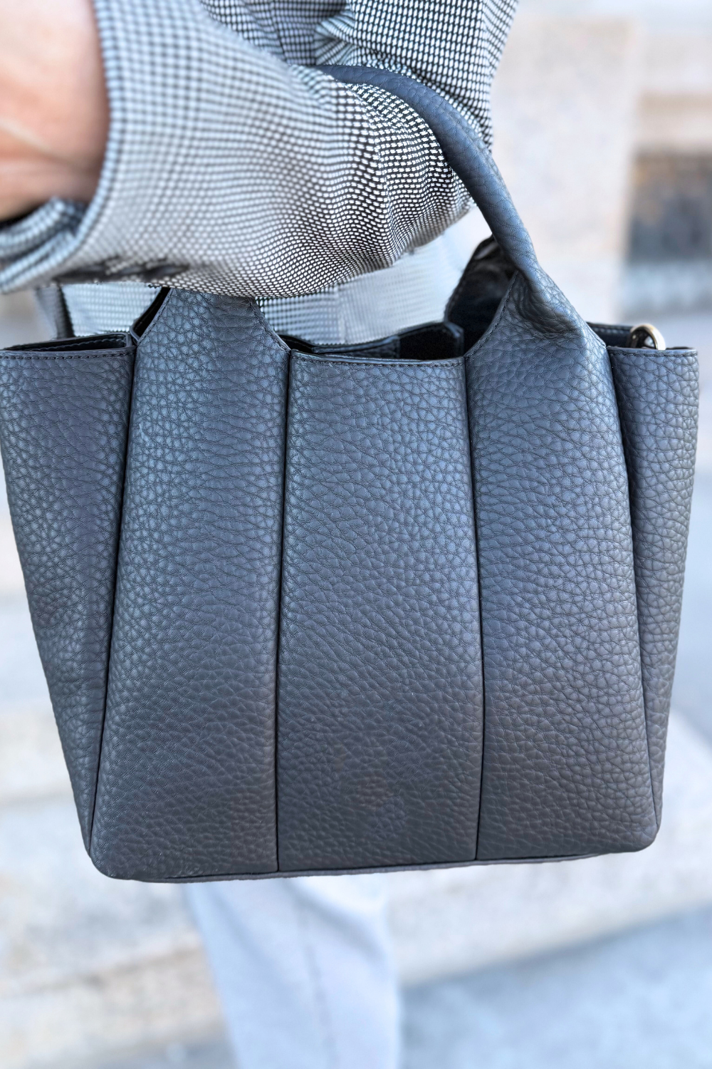 Shop now and enjoy the stylish functionality of the Maddox Paneled Satchel—perfect for adding a touch of sophistication to your fall ensemble!