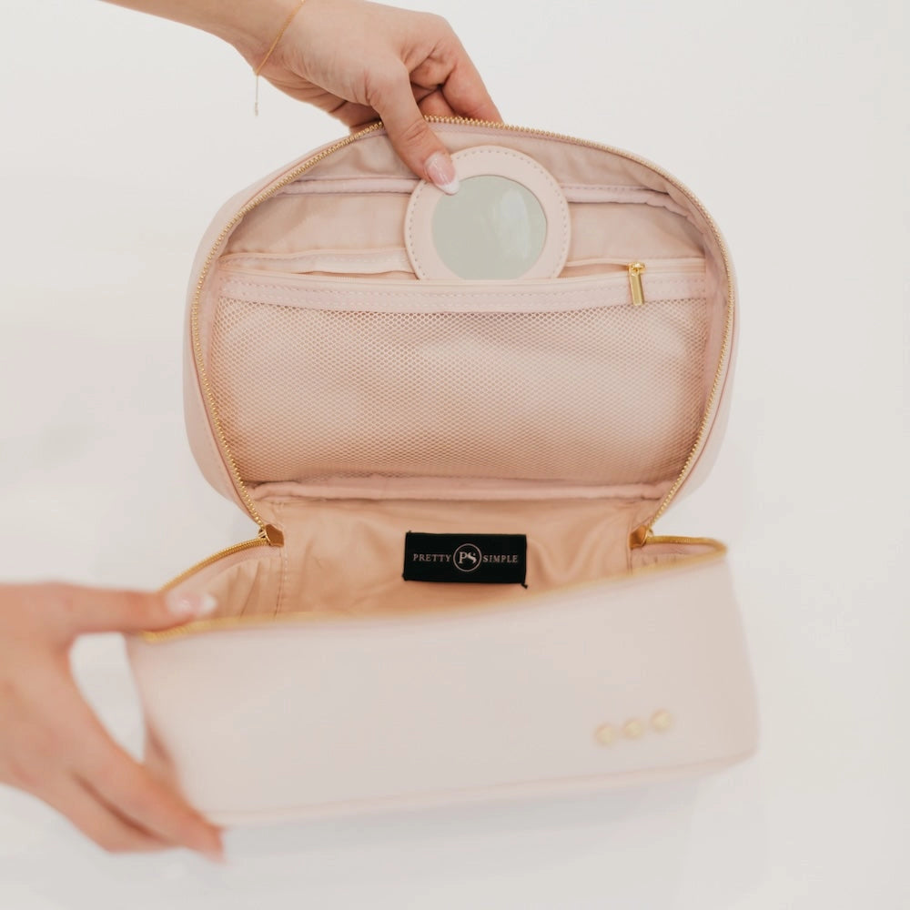 Introducing your new BFF - our Madelyn Bow Makeup Bag! This makeup bag has plenty of room for all your beauty products, hair essentials, and more. Plus, there's a zipper pocket with a compact mirror for on-the-go touch-ups. Perfect for stylish travelers and it's easy to clean too!
