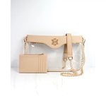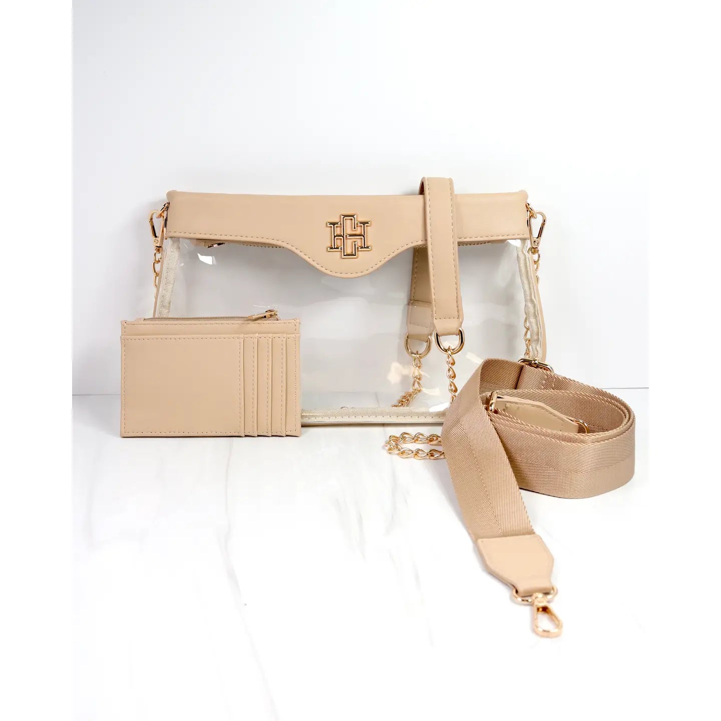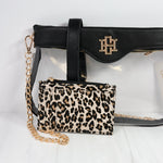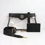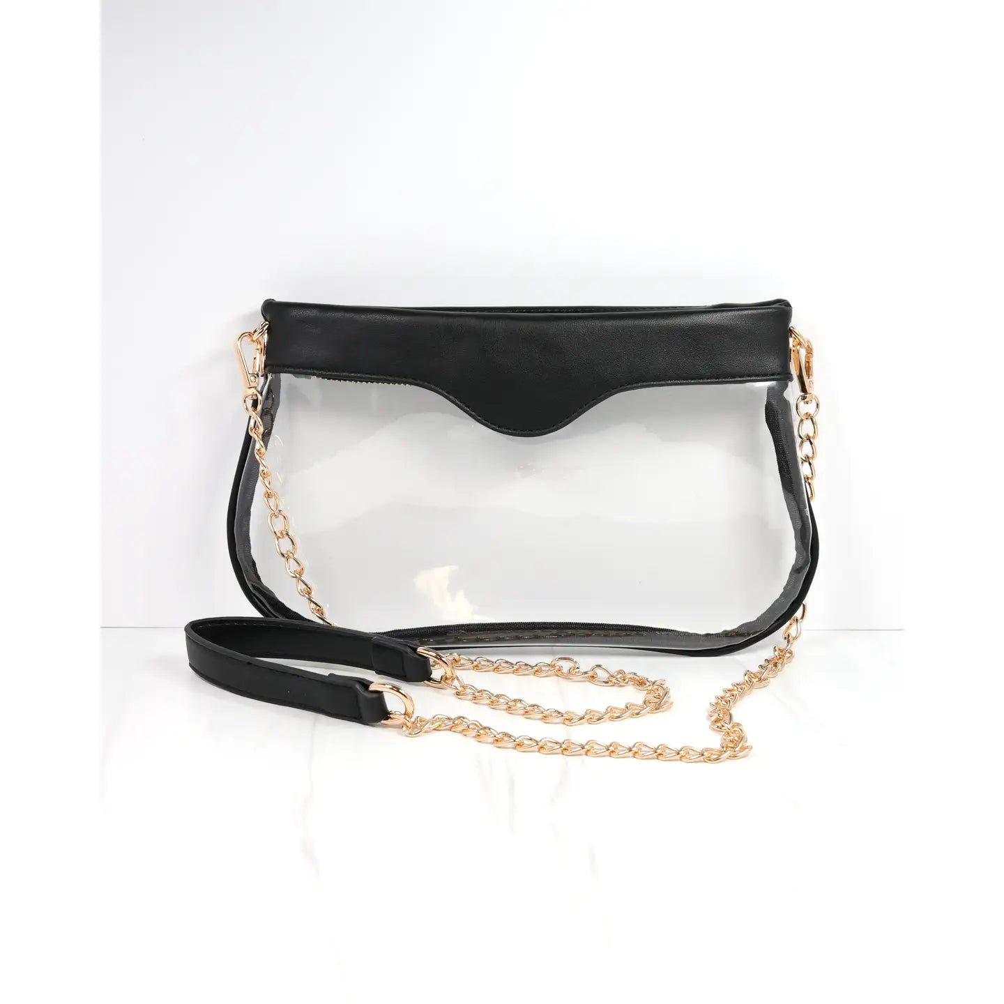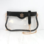 The Madi Clear Crossbody in Black is the perfect accessory for game day, combining style and practicality. Its transparent design meets stadium requirements, while the chic chain strap adds a fashionable touch. Easily pair it with our purse chains, nylon strap, or Molly Card Holder to customize your look and keep essentials close at hand.
