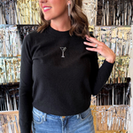 Cheers to cozy style with this playful long sleeve sweater featuring a martini graphic on the front. Crafted from soft knit fabric with a relaxed fit, it adds a fun, spirited touch to your casual look. Perfect for festive gatherings or laid-back days with flair!