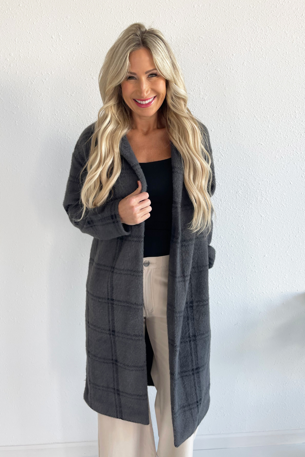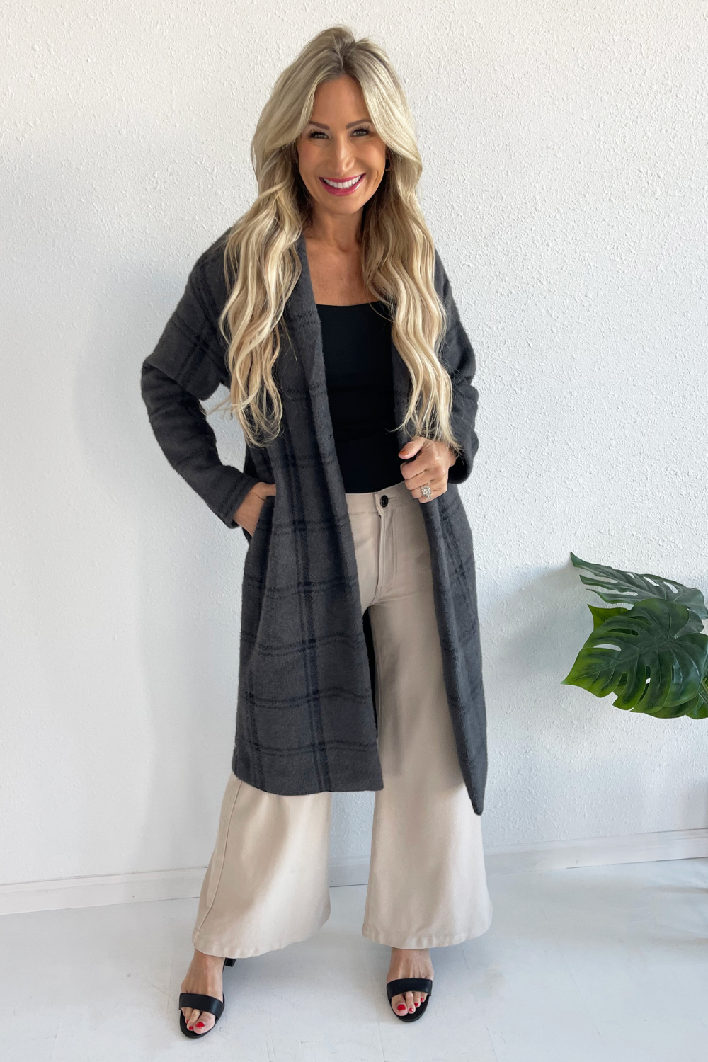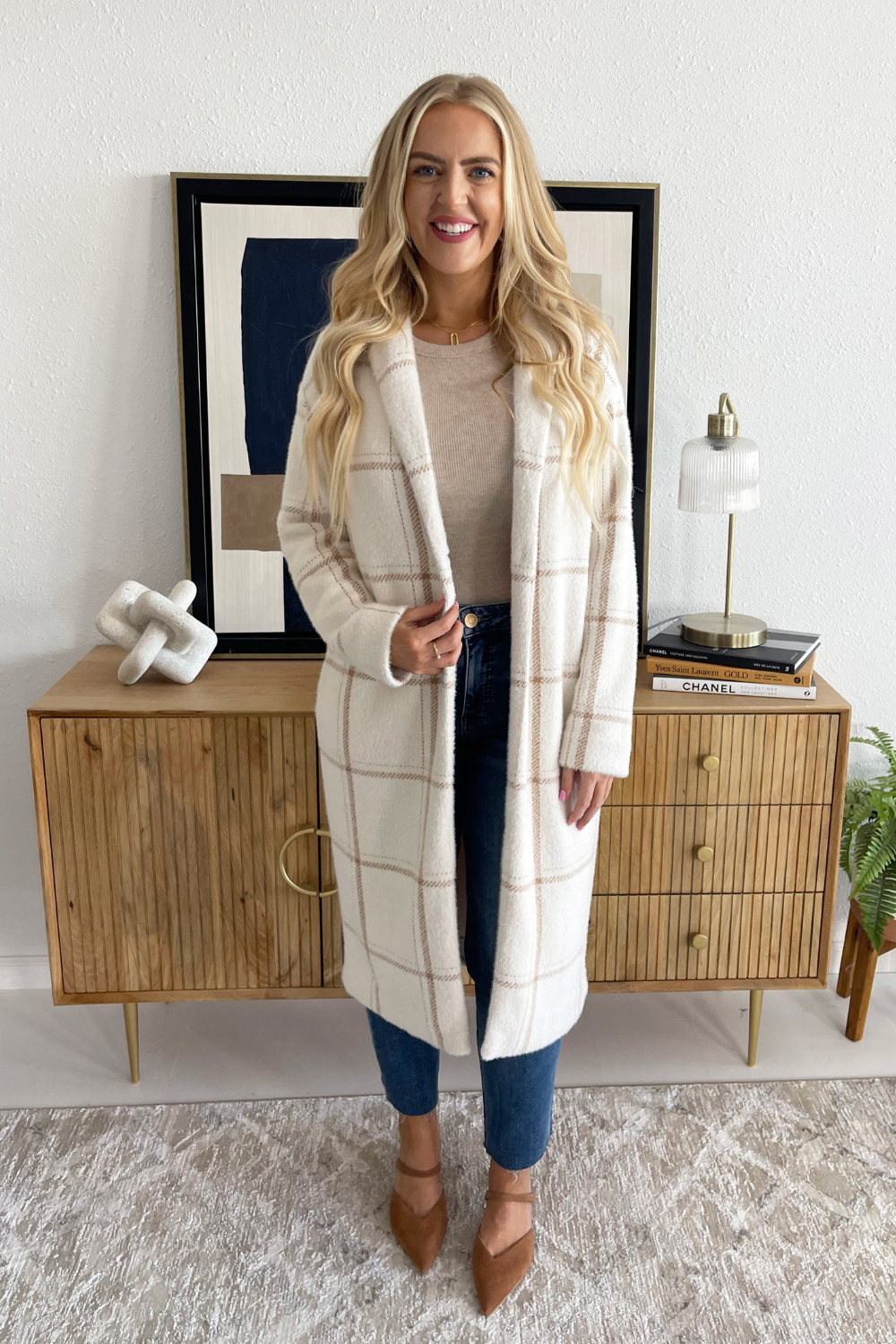 Wrap yourself in the warmth of this cozy coat, crafted from a heavy sweater knit fabric and designed with a notched lapel and front button closure for effortless wear. This stylish piece effortlessly elevates any ensemble with its sophisticated charm.