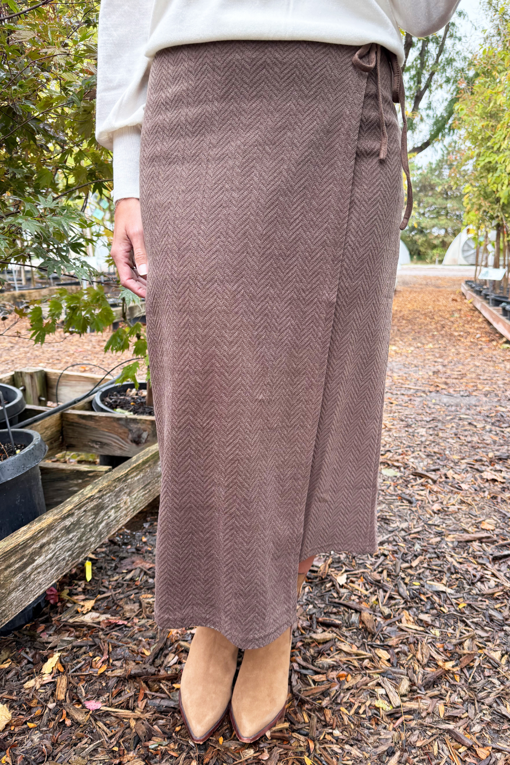 The Maxi Wrap Skirt is about to be your new favorite fall wardrobe piece! The tie detail at the waist adds elegant style and customized fit! Pair this with a basic sweater or top and nude heels for the perfect night out look!