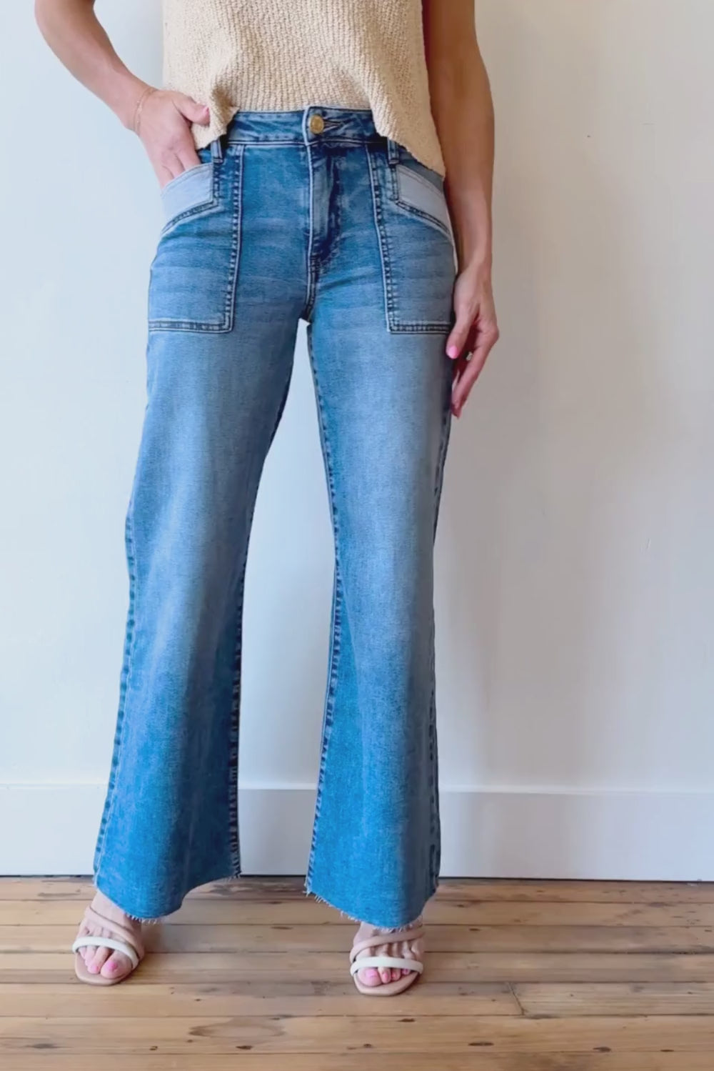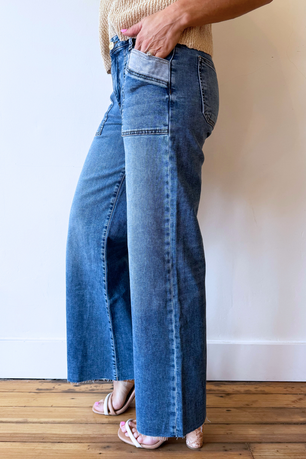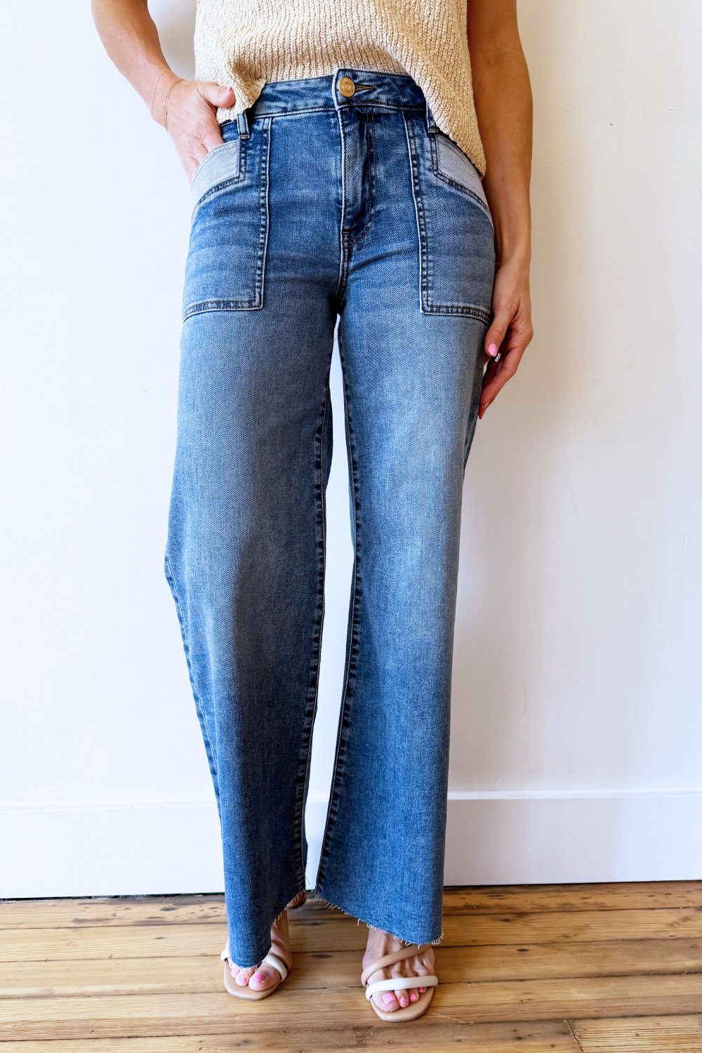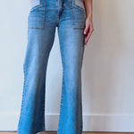 Maya High Rise Porkchop Front Pockets Wide Leg Raw Hem