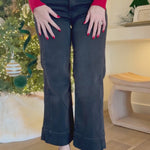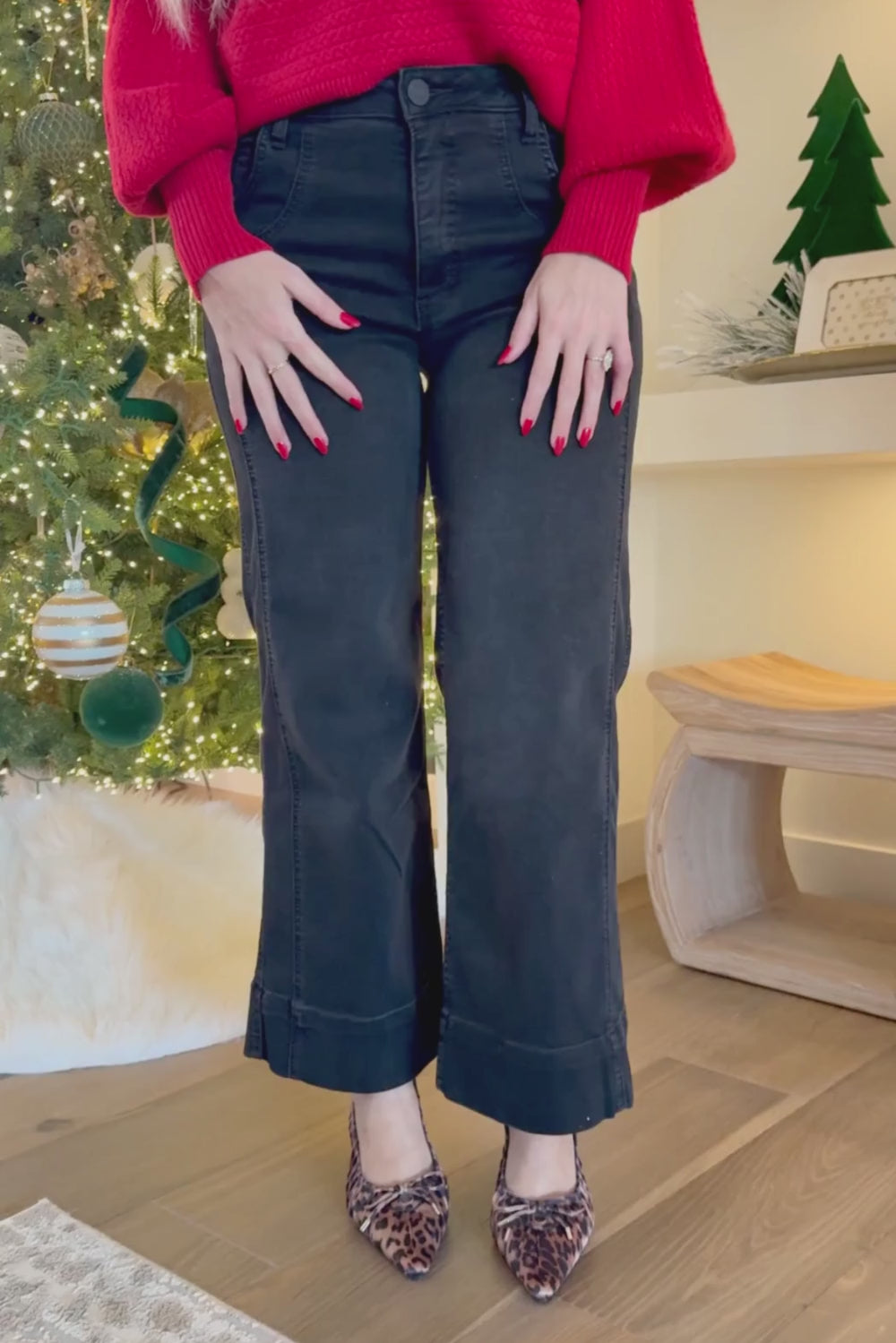 Designed to flatter, these high rise wide leg jeans are made from a soft, stretchy material for ultimate comfort. Featuring Fab Ab pockets, double front pockets, and and a wide hem, they offer a modern silhouette with just the right amount of structure and style.