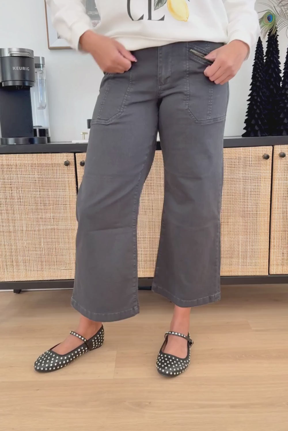 Meg High Rise Wide Leg Pant W/ Zipper Pocket