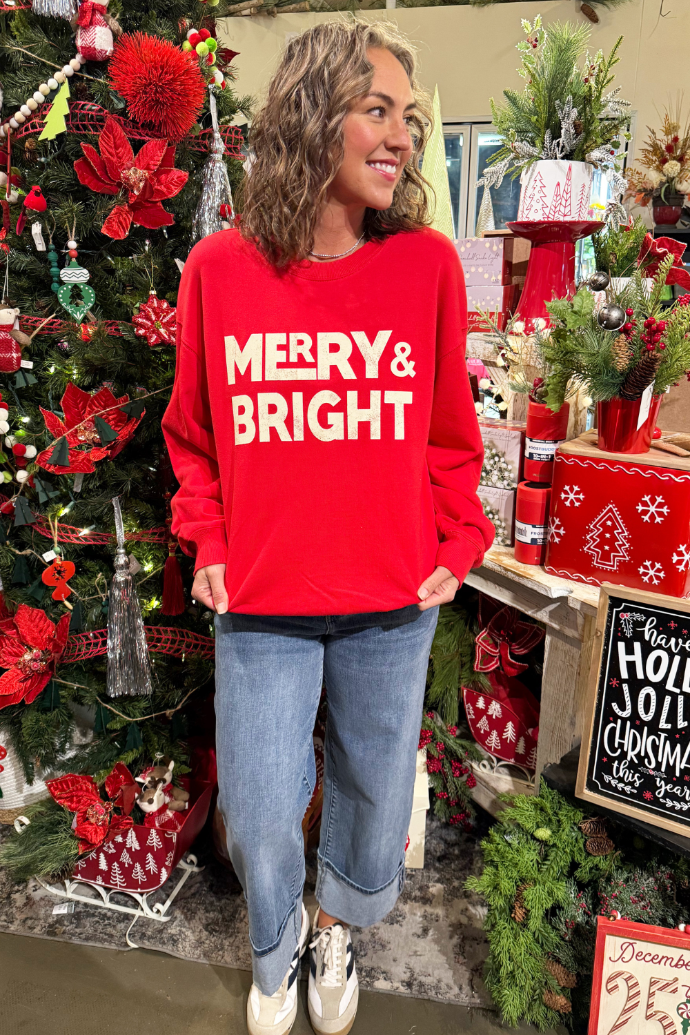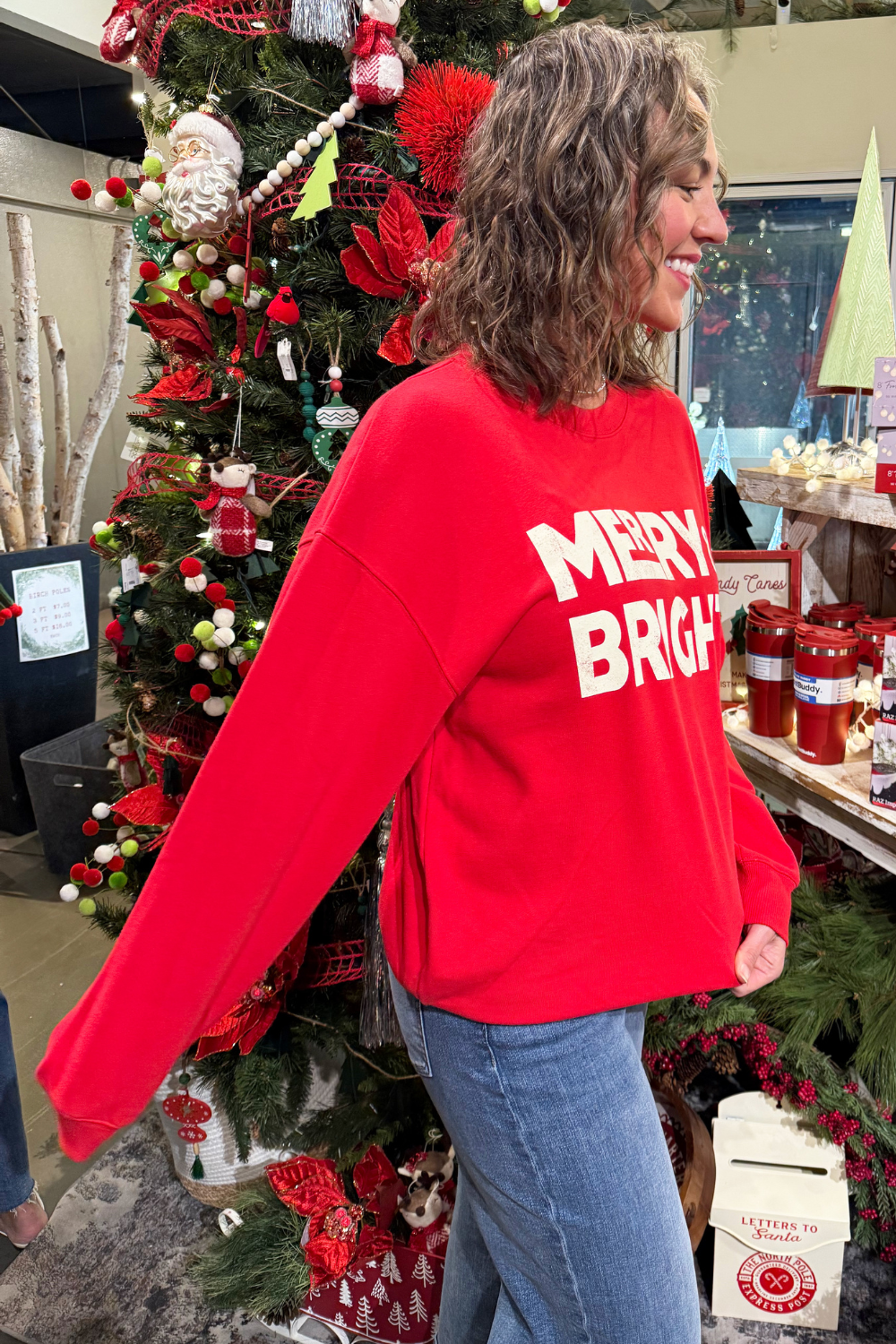 Perfect for the holidays, this Merry and Bright crew neck will be perfect for holiday parties or lounging on the couch watching Christmas movies! Dress it up with denim or down with pajama bottoms for a cozy outfit!