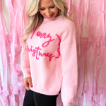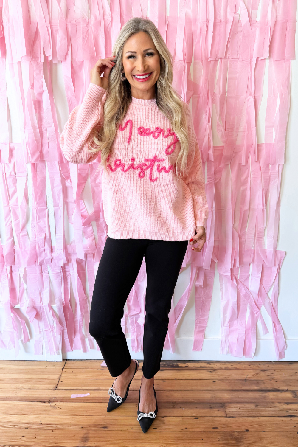 Get into the holiday spirit with this festive “Merry Christmas” tinsel lettering sweater. The bold, shimmering letters add a fun and cheerful touch to the cozy knit design. Perfect for holiday parties, family gatherings, or spreading seasonal joy wherever you go!