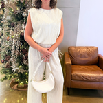 Perfect on their own or as a set with the Sleeveless Metallic Pleated Muscle Top with Bubble Hem, these pants have endless versatility! Featuring an elastic waistband, these pants provide comfort for all day wear! Pair back to some heels for an effortless look!