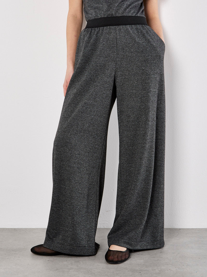 Smart yet chic, these trousers pair a soft, woven finish with a timeless dogtooth print. Designed in a figure-skimming wide leg silhouette, they feature side seam pockets and an elastic waist for the perfect fit!