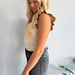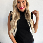 Mock Neck Faux Leather Ruffle Tank Top