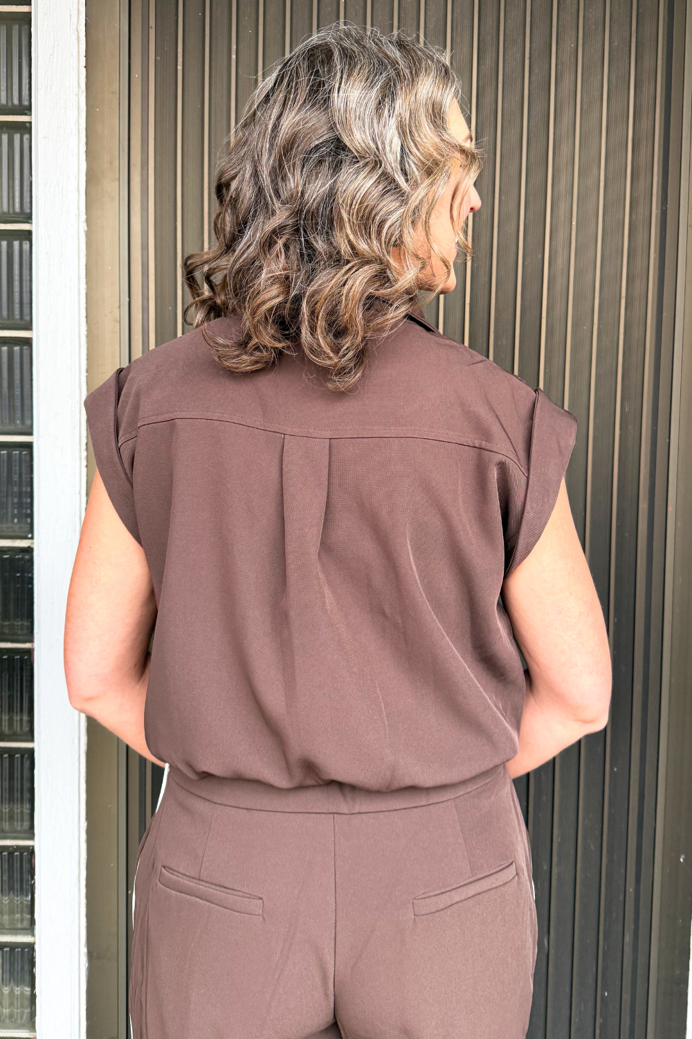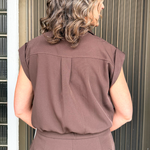 The Mock Neck Rolled Up Piping Detail Vest is perfect for sunny days. This vest top has a mock neck, folded rolled up sleeves, chest flap pockets, and front zip closure. The contrast piping adds a fun touch. Plus, the vest is lined. For the matching set, wear this vest with the Contrast Waisted Band Wide Leg Pants!