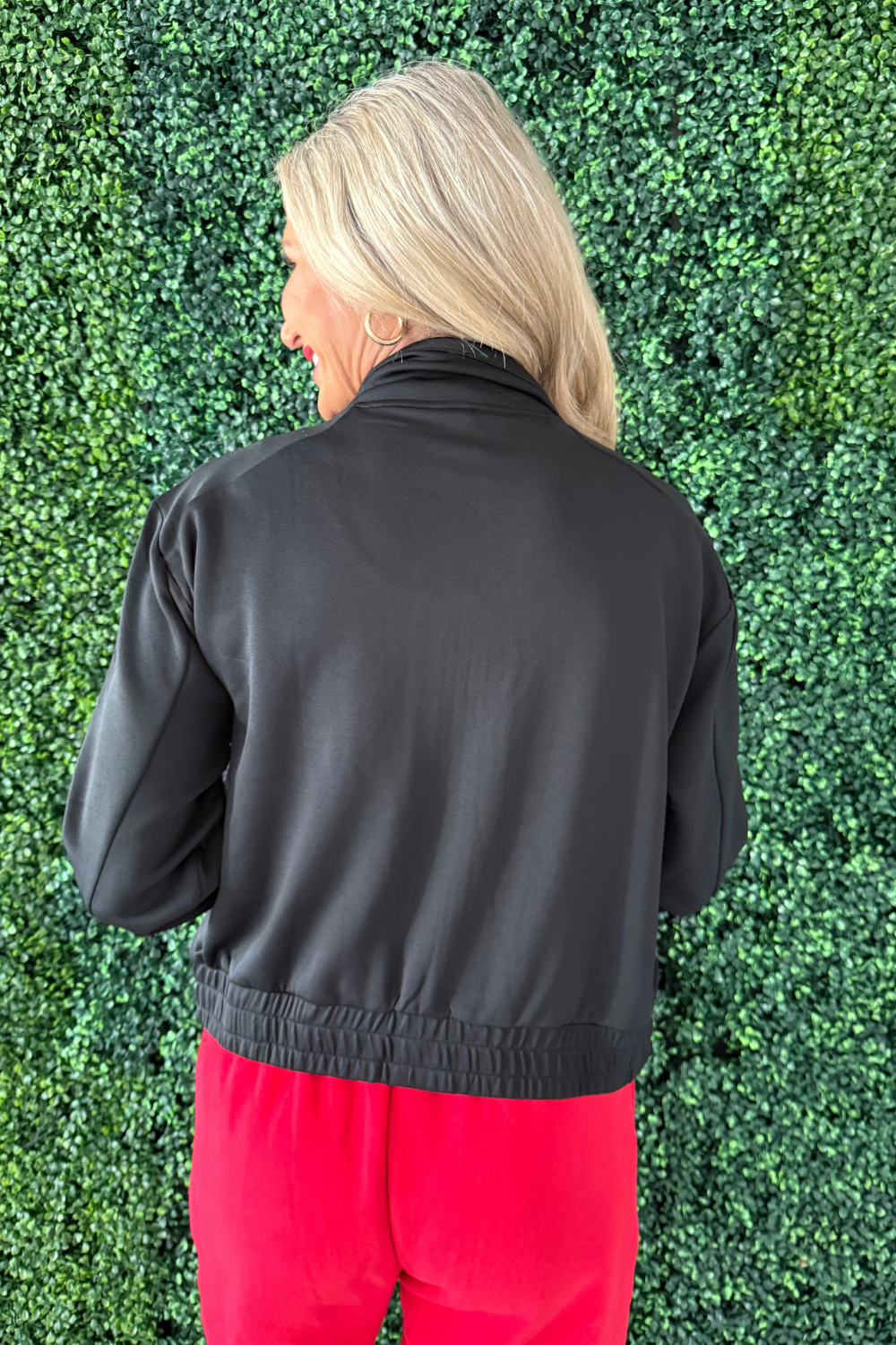 With a full zip and mock neck, this active jacket will keep you warm before and after your workouts! It features a cuffed hemline, a relaxed silhouette, hand pockets, and long sleeves with cuffed wrists. Pair with our Cuffed Joggers With Zippered Pockets for the perfect athleisure outfit!