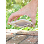 This wallet card holder is the perfect on the go accessory to have in your handbag. It has a slim silhouette and holds so many essentials. Each side of the wallet is identical, both showcasing card holder slots and space for cash. It also has a tip zipper closure to secure coins as well.