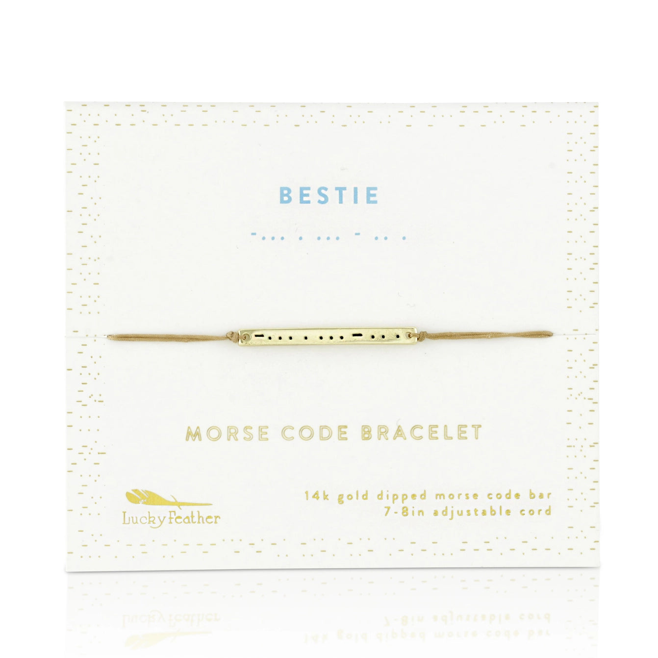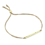 Morse Code Bar Bracelet represents a subtle, secret reminder for you and your bestie! These bracelets are nickel-free and have an adjustable cord that extends from 7-8 inches for most wrist sizes. The sliding toggle provides a reliable closure and custom fit for her comfort.