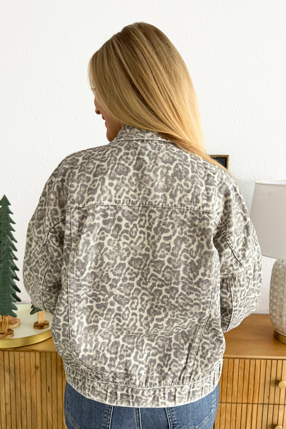 This muted leopard denim jacket adds a subtle touch of edge with its toned-down animal print and classic denim structure. The soft, versatile wash makes it easy to layer, giving any outfit a stylish, modern twist. A statement piece that still feels effortlessly wearable!