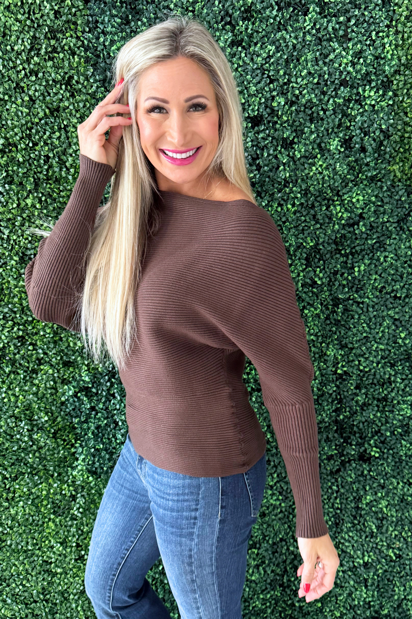 Perfect for any occasion, this basic long sleeve top can be worn alone or under your favorite outerwear. The slight boat neck sets this top apart and adds elegance!