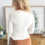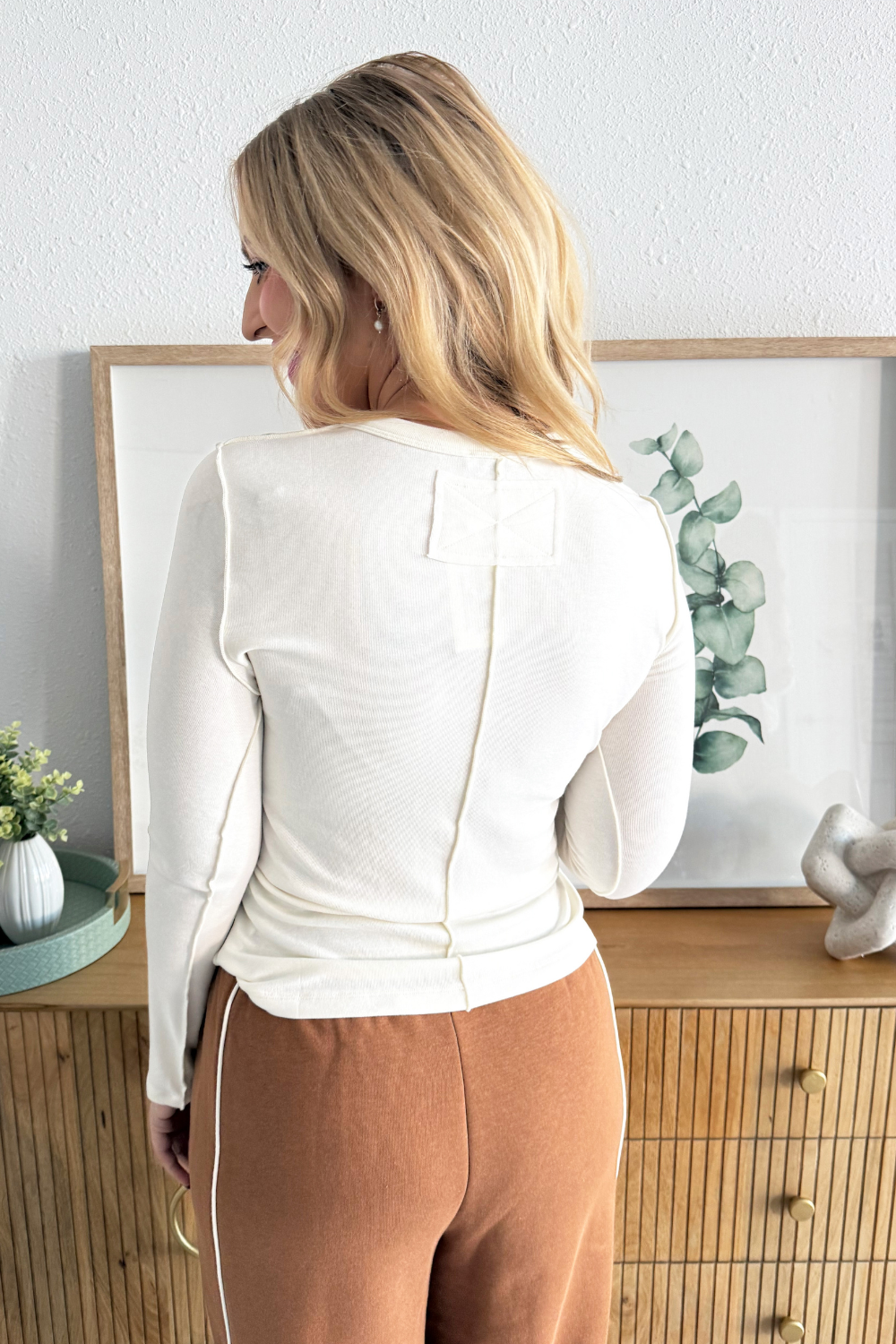 Grab this basic out seam detailed basic jersey top for a top you can wear alone or layered under your favorite outerwear! Pair back to sweatpants for a casual look or denim and a vest for a dressy fall outfit!