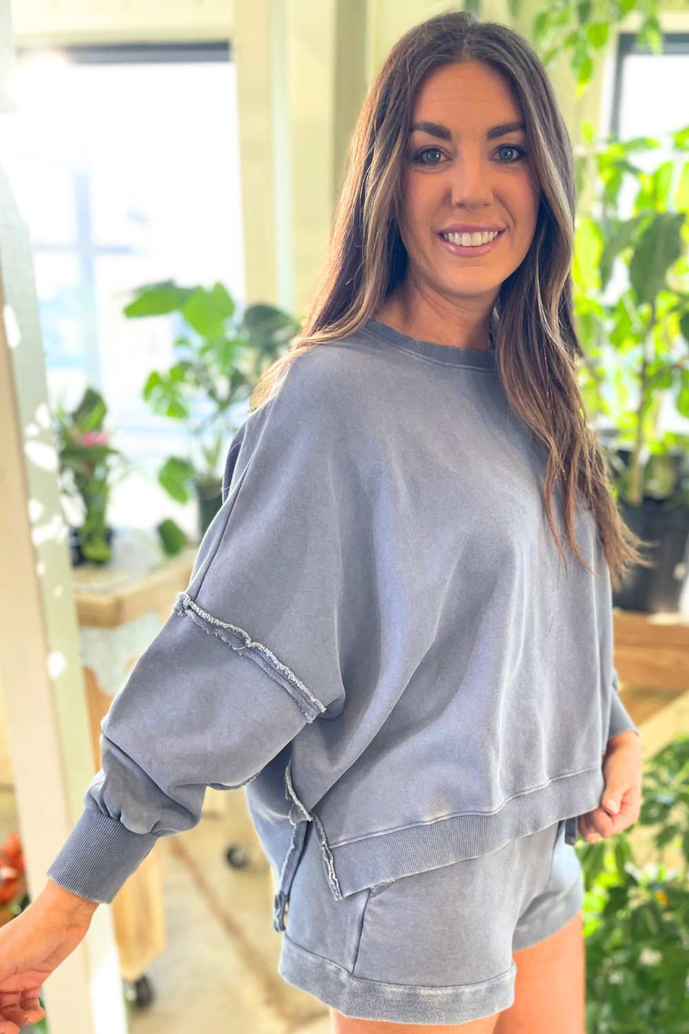 The Oversized Crewneck Sweatshirt is sure to become a favorite. This sweatshirt is soft and warm. The exposed seam detail adds a touch of style and the oversized boxy fit gives it a relaxed yet chic vibe. This sweatshirt is perfect for cozy days and nights.