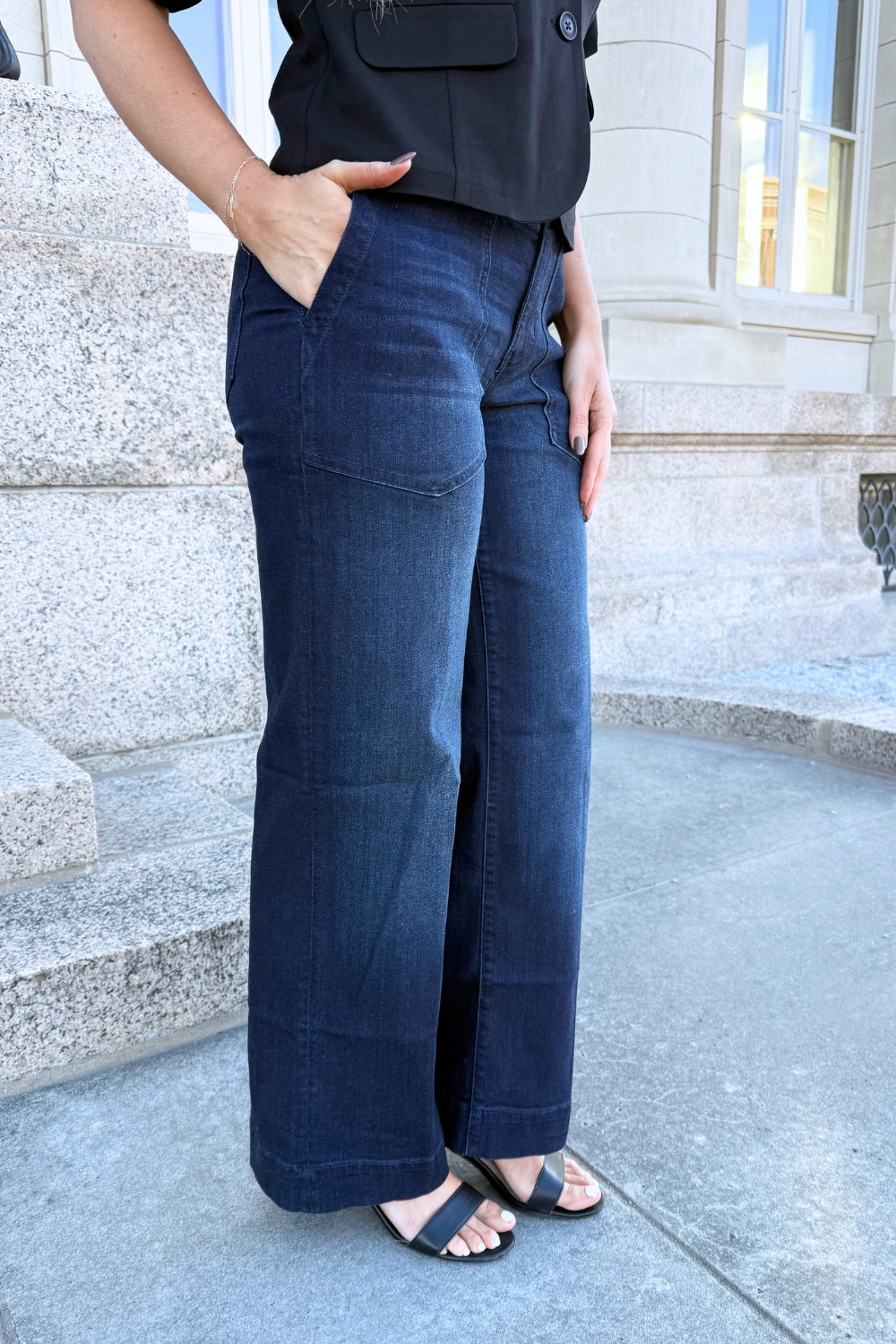 Experience the best of both worlds in the Patch Pocket Wide Leg Pant. Soft to the touch and offering just the right amount of stretch, these wide-leg trousers provide unparalleled comfort without compromising on style.