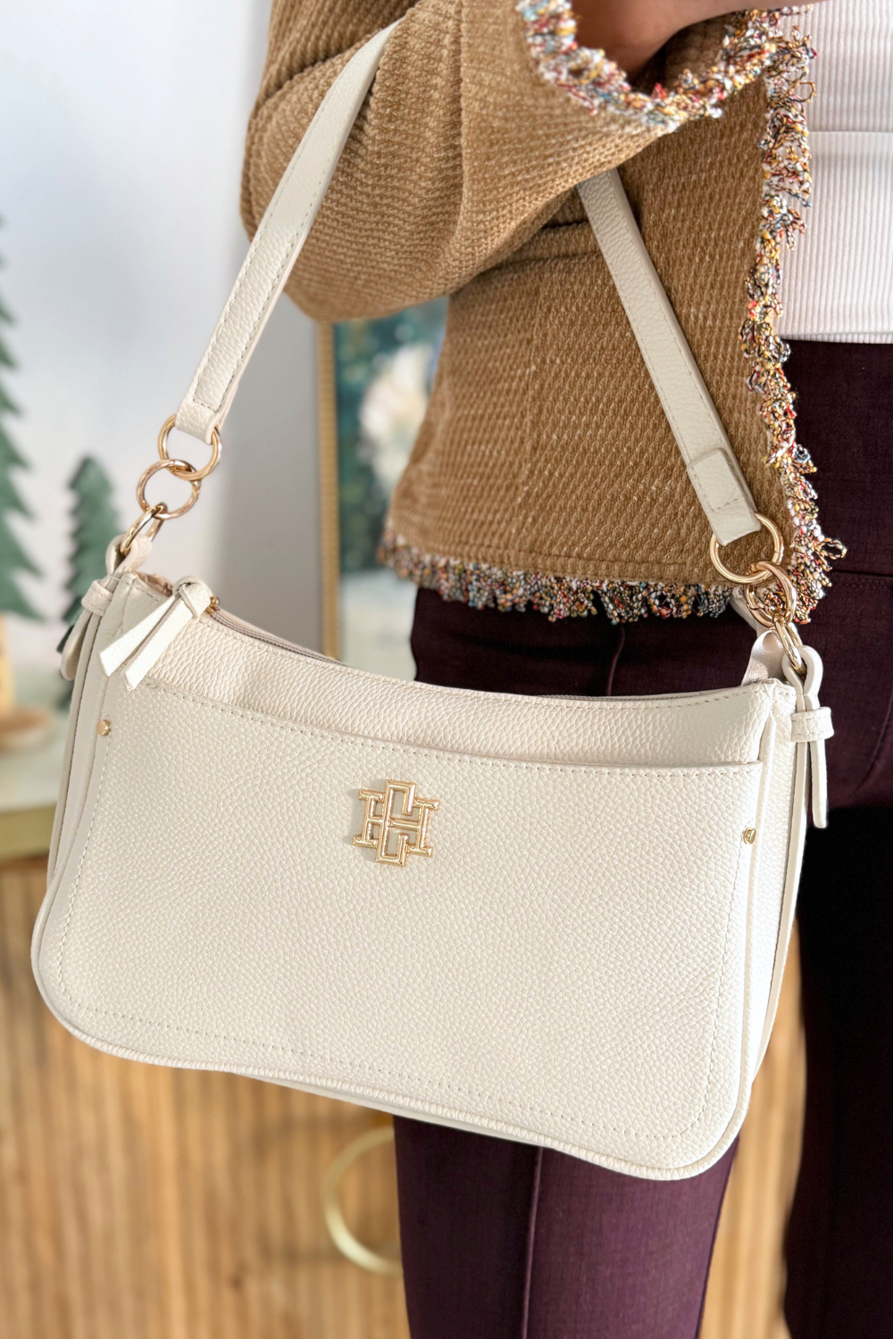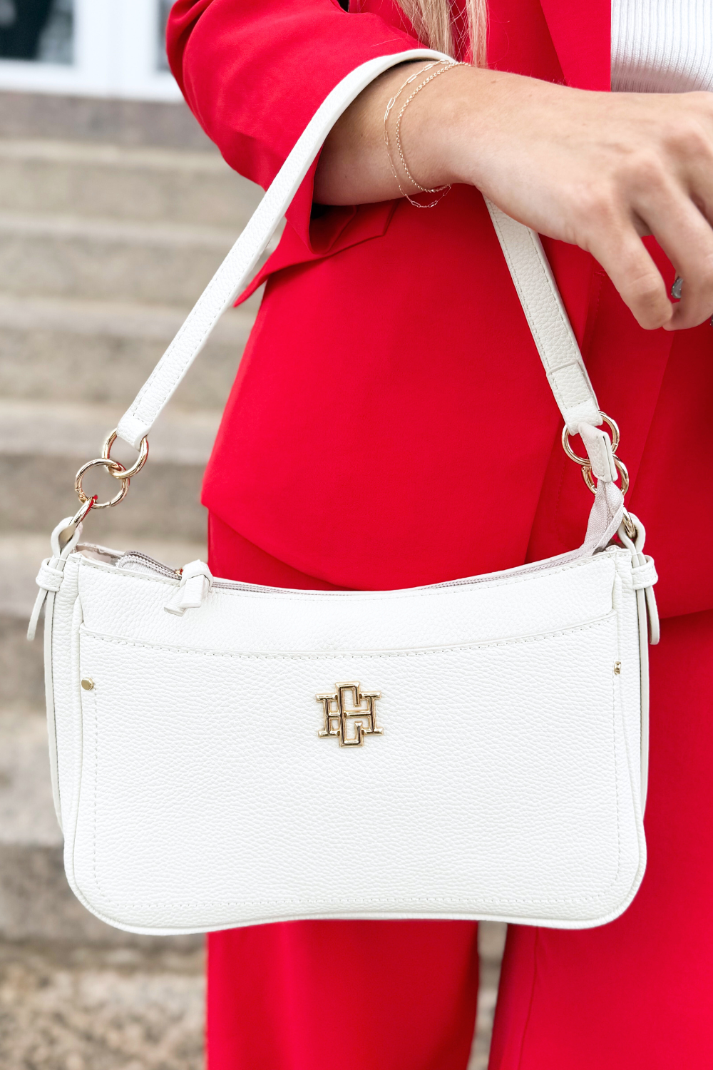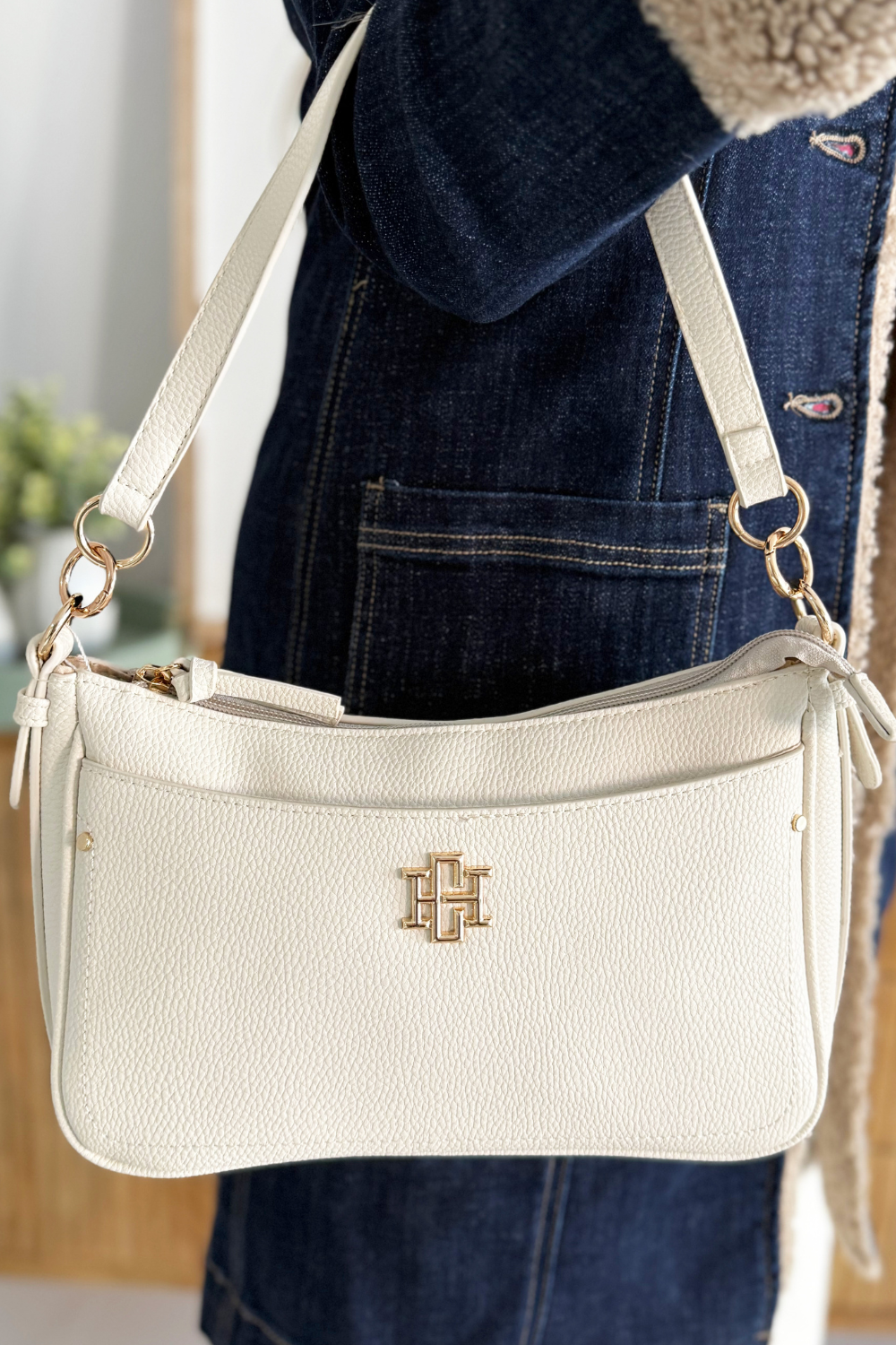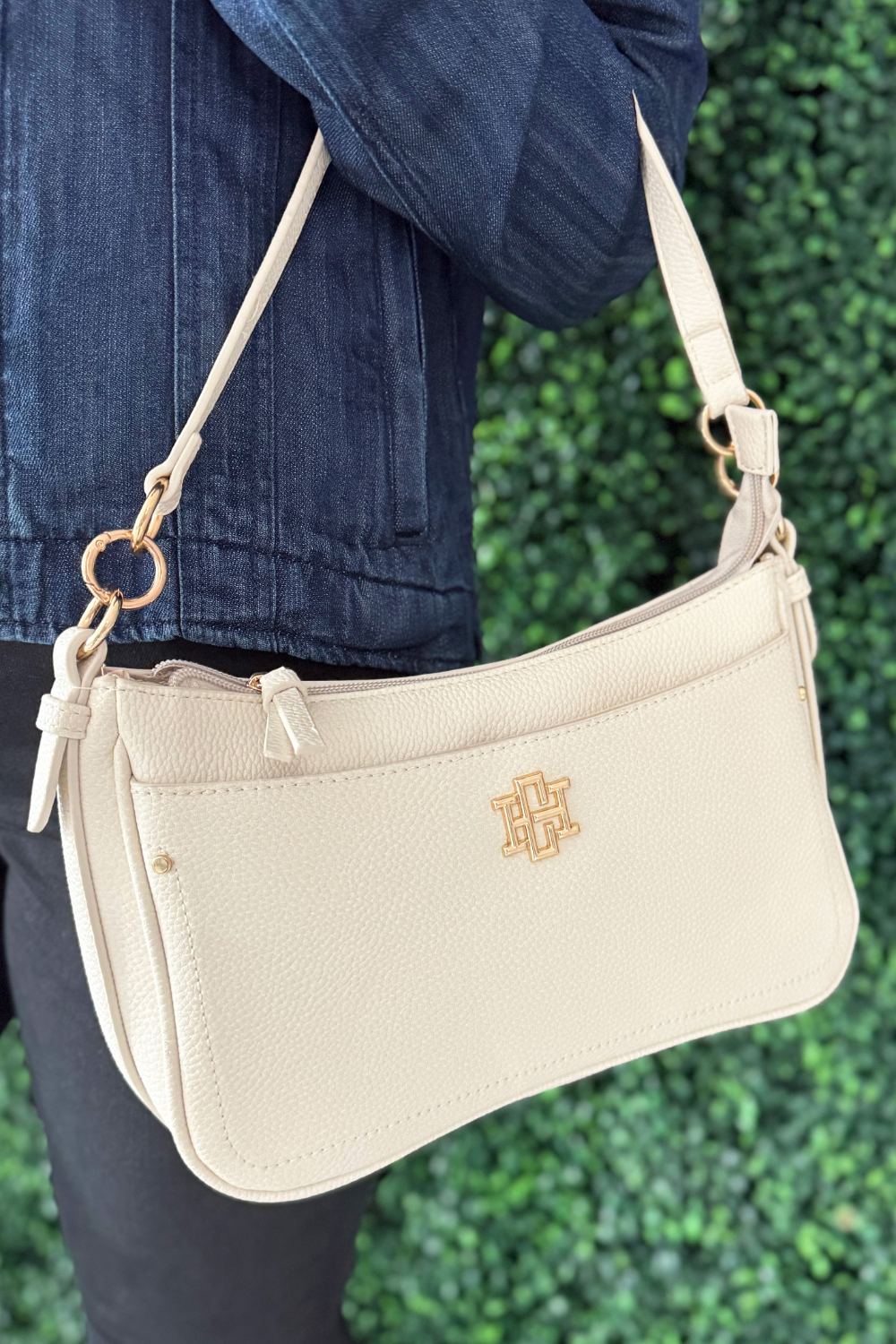 This sleek pebbled vegan leather handbag has a structured silhouette to pair perfectly with any look. It combines style with functionality to hold all your necessities. Each side of this crossbody has a large magnetic pocket that works especially well for securing cell phones. It has a top zipper closure leading to the interior of the bag with two open interior pockets and one zippered pocket as well. This bag also comes with two carrying straps- one shorter shoulder strap and an adjustable nylon crossbody strap as well. Both are removable making it such a versatile piece.
