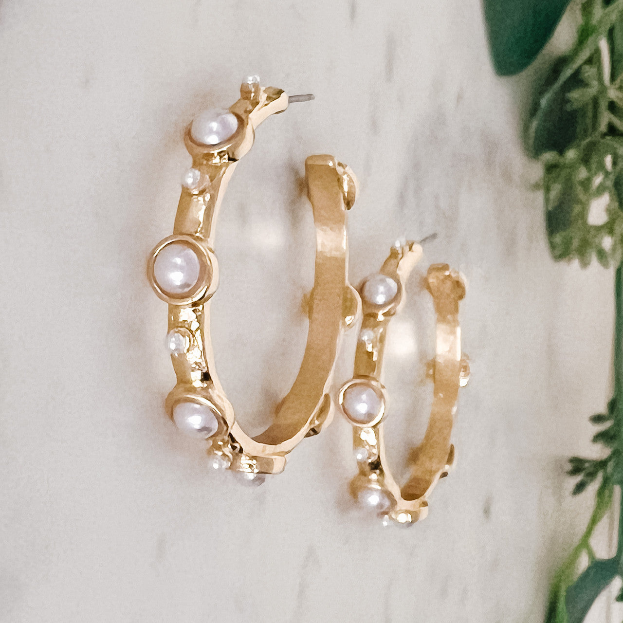 Peaarl-Studded Hoop Earrings