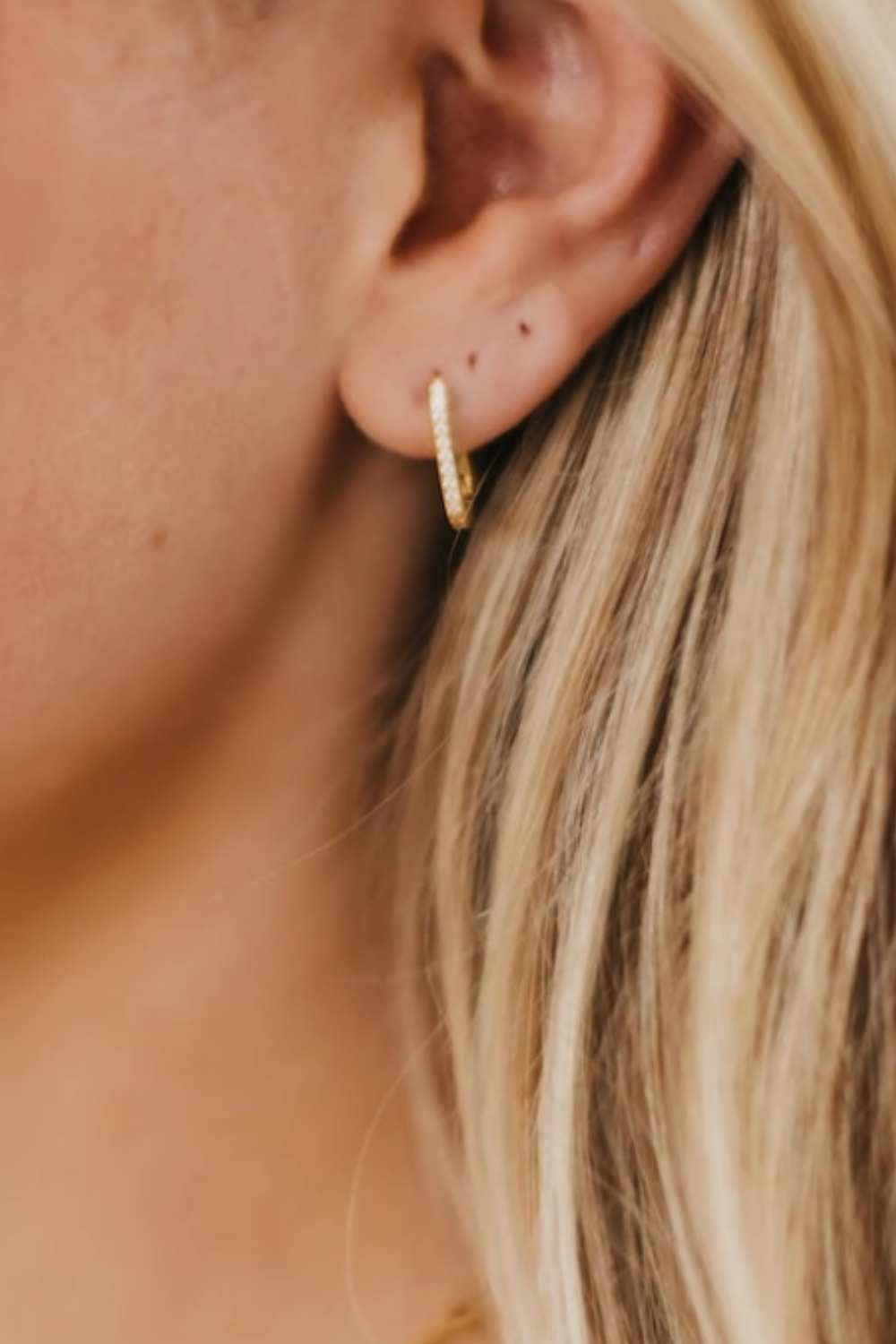 Add a twist to your earring game with Petra U Hoop Diamond Earrings! These timeless earrings come in both gold and silver, and feature a classic design with pave diamond details. Elevate your accessory game and stand out from the crowd with these unique hoops. Measurements: .5" drop