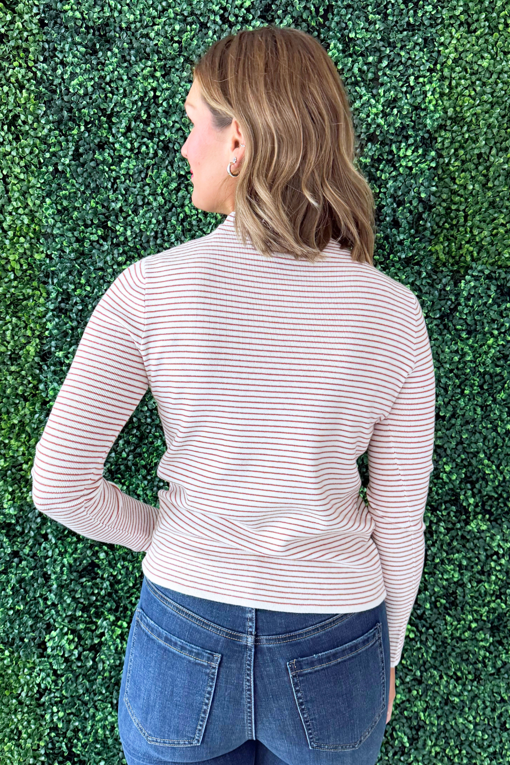 Simple and easy, this Mock Neck Sweater features a subtle pinstripe pattern for a classic silhouette that you'll reach for again and again! Wear on its own or throw your favorite outerwear overtop for a cozy layered look!