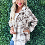 If you're needing a plaid shirt jacket for your fall wardrobe, this is the one for you! This style doesn't stray far from the classic featuring front and side pockets and a button front. This is a must-have for this fall!