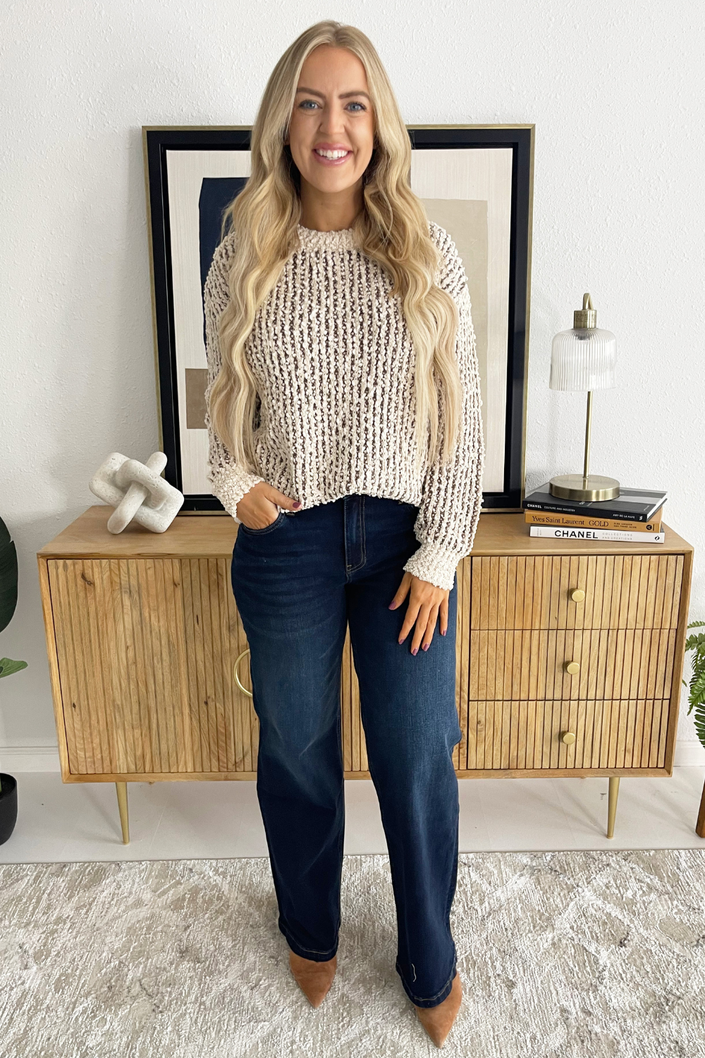 The Popcorn Yarn Crew Neck Sweater is perfect for many occasions. You will enjoy the unique texture and warmth of the popcorn yarn while staying comfortable and stylish. The fabric is soft and cozy, making this sweater one you will want to wear often. Wear it with your favorite denim or with trousers.