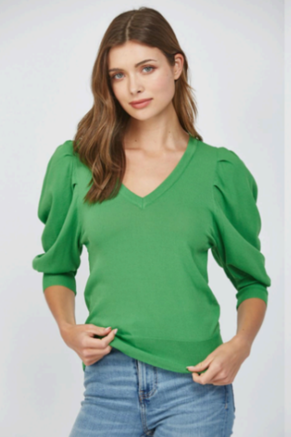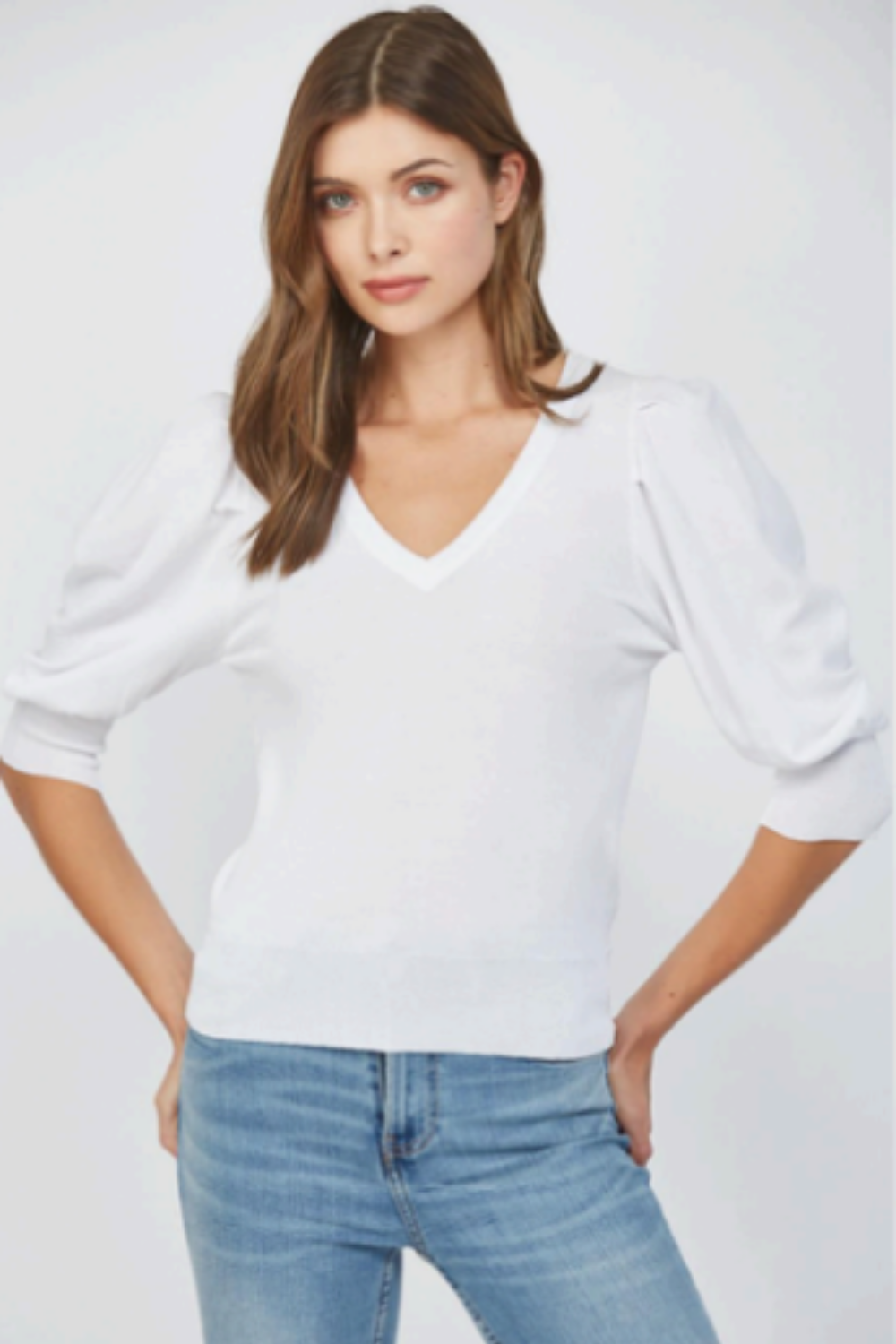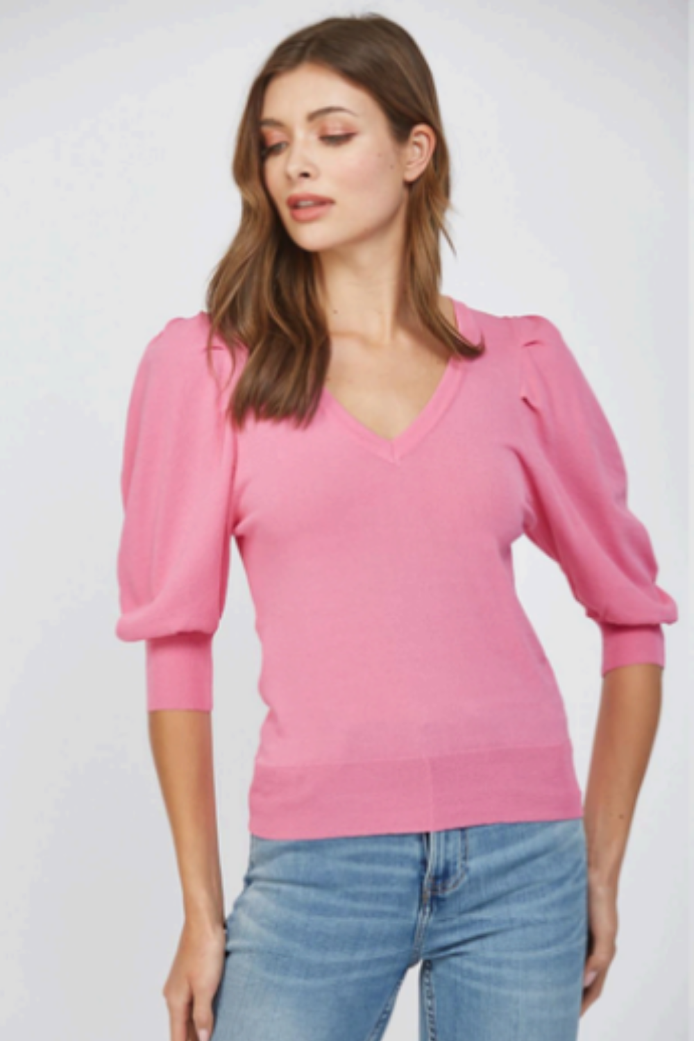 Puff Sleeve V-Neck Sweater