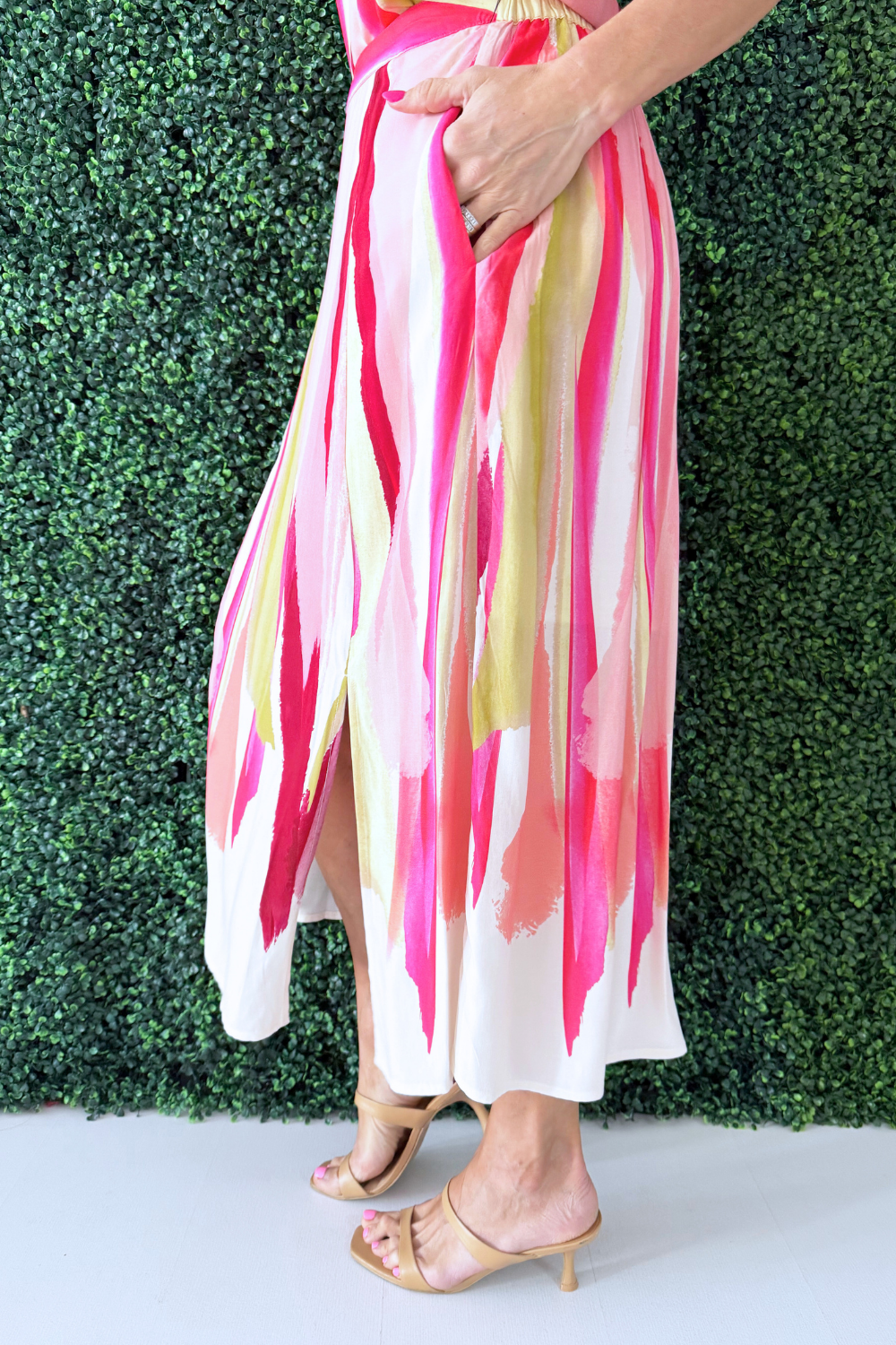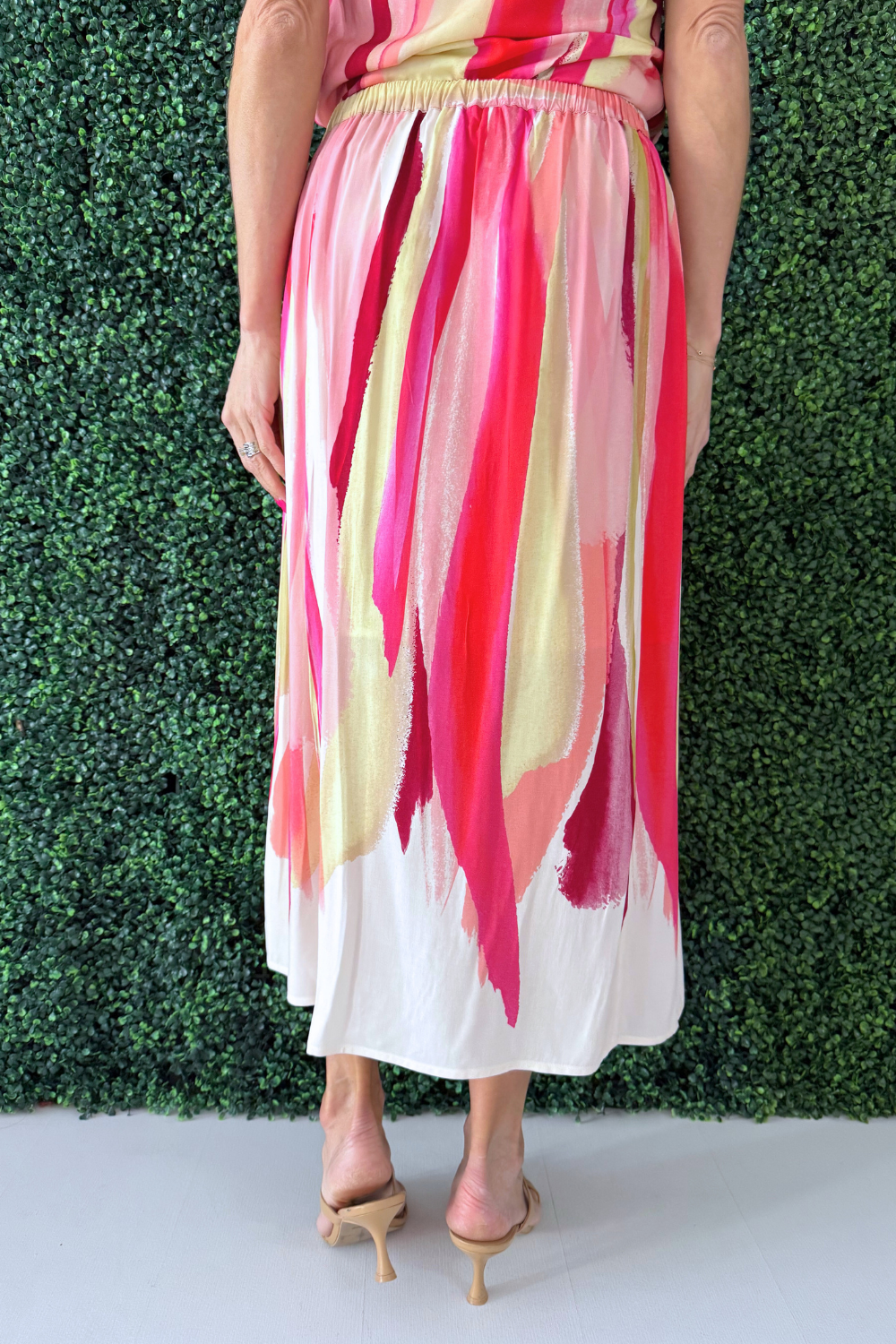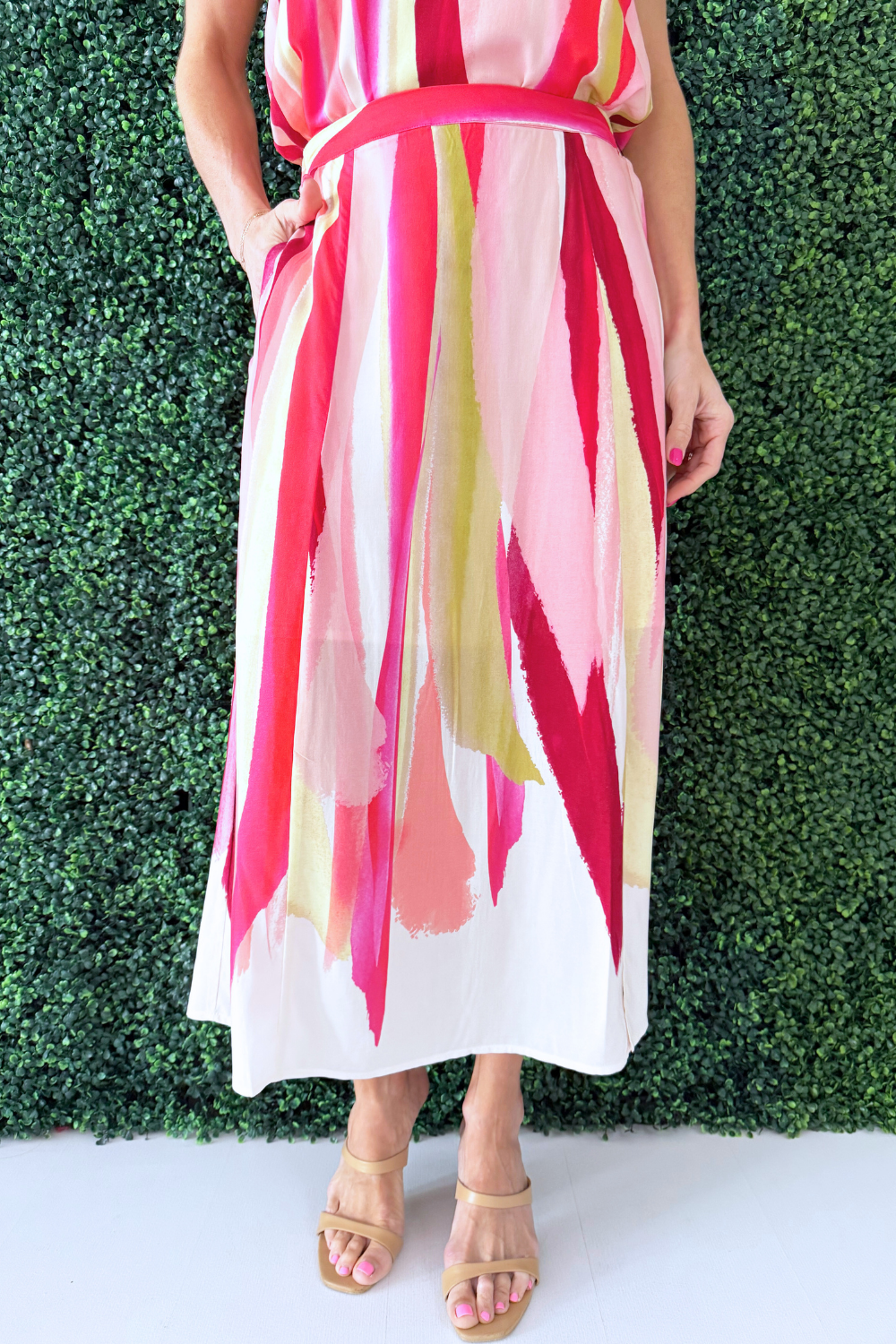 The Pull-On Woven Maxi Skirt brings effortless style and comfort together with its eye-catching stripe design and flowy silhouette. Made from lightweight woven fabric, it drapes beautifully and keeps you cool throughout the day. The pull-on waistband offers an easy, flattering fit, making it a go-to piece for everything from casual outings to vacation looks. Pair it with the matching flutter sleeve top for a coordinated set or style it with a simple tank for a relaxed vibe.