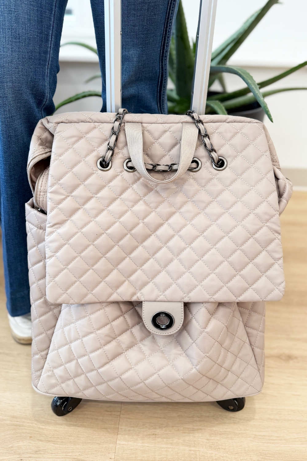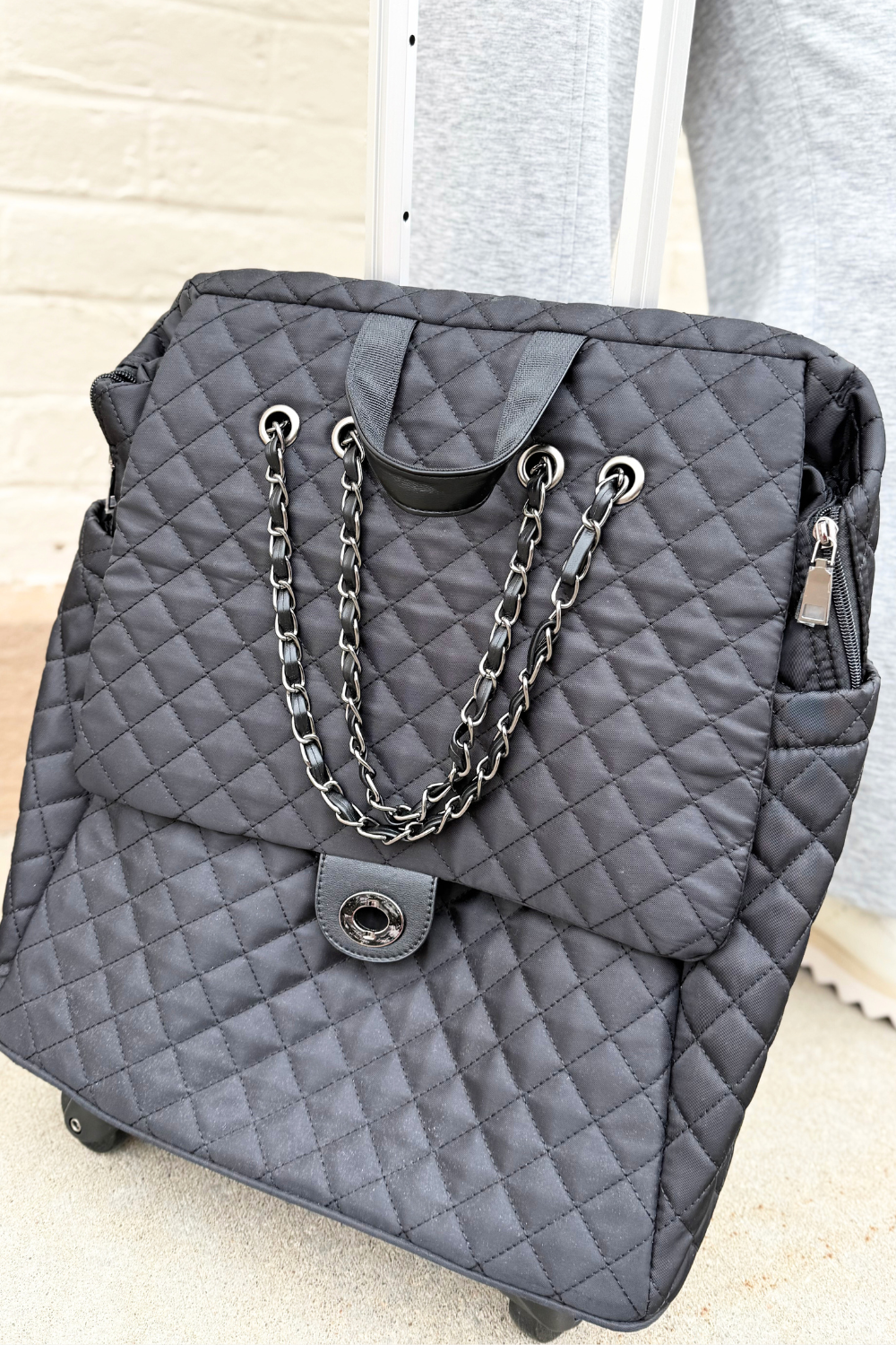 This roller tote is perfect for traveling anywhere! Whether it's a weekend away or a staycation, this bag is perfect!