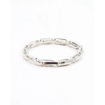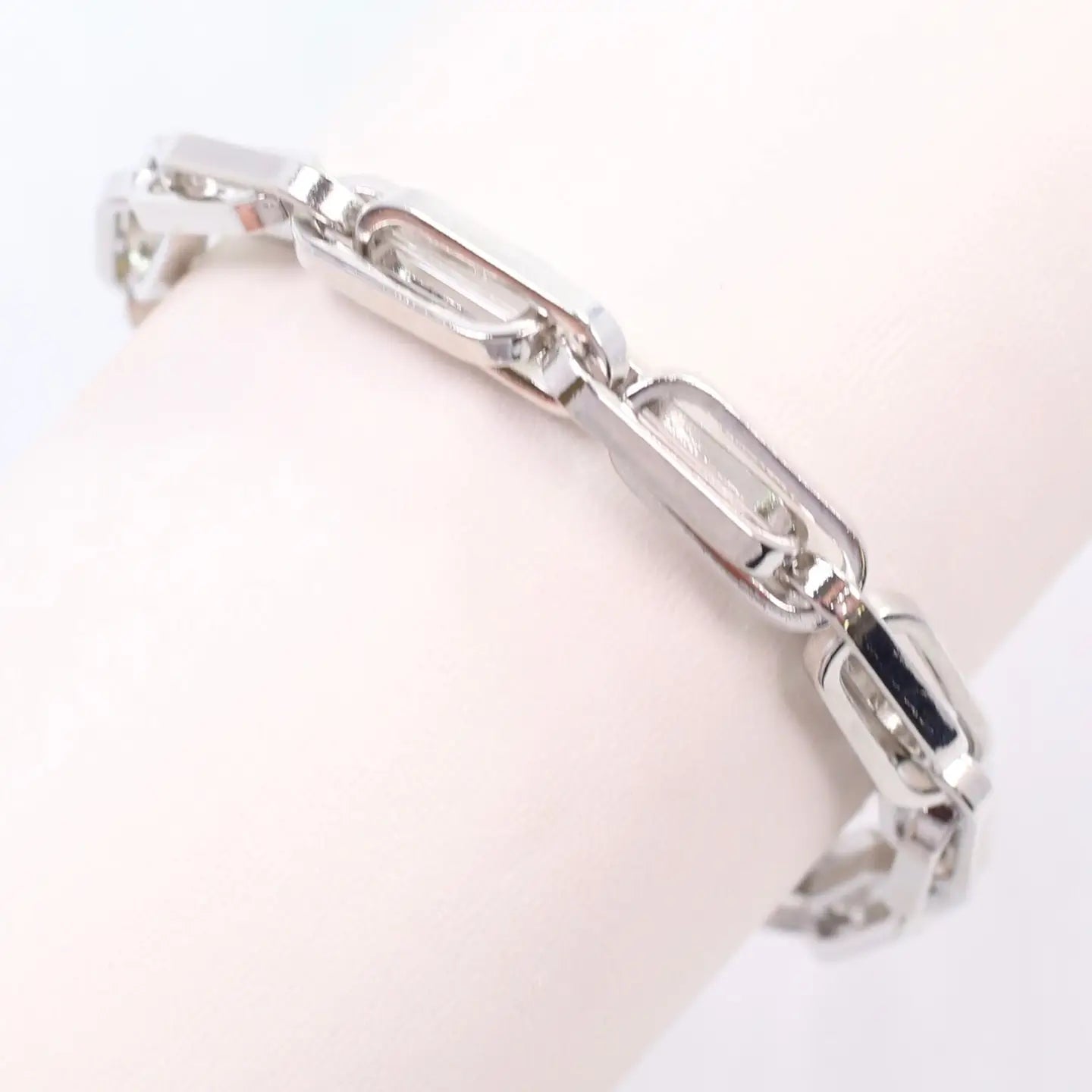This simple bracelet is made with interlocking links with a shiny metal finish. It's a great size to wear by itself or in a fuller stack for a different look. Stretches to fit most wrists.