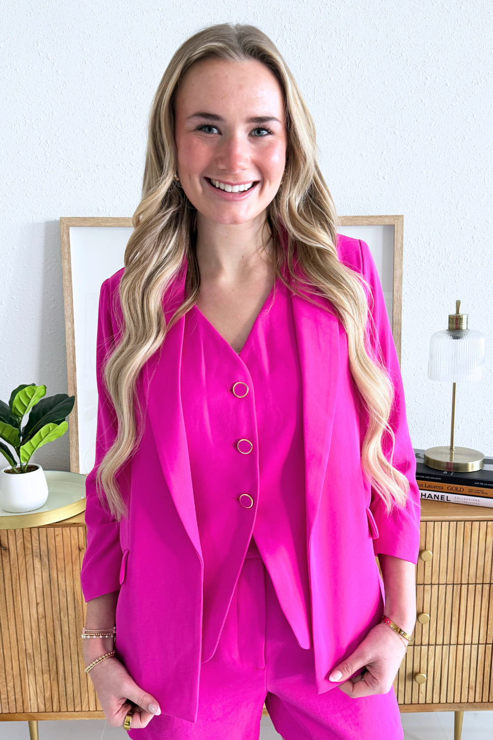 - Merrick is 5'6" and wears a small/0 (Hot Flamingo)