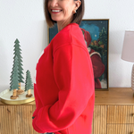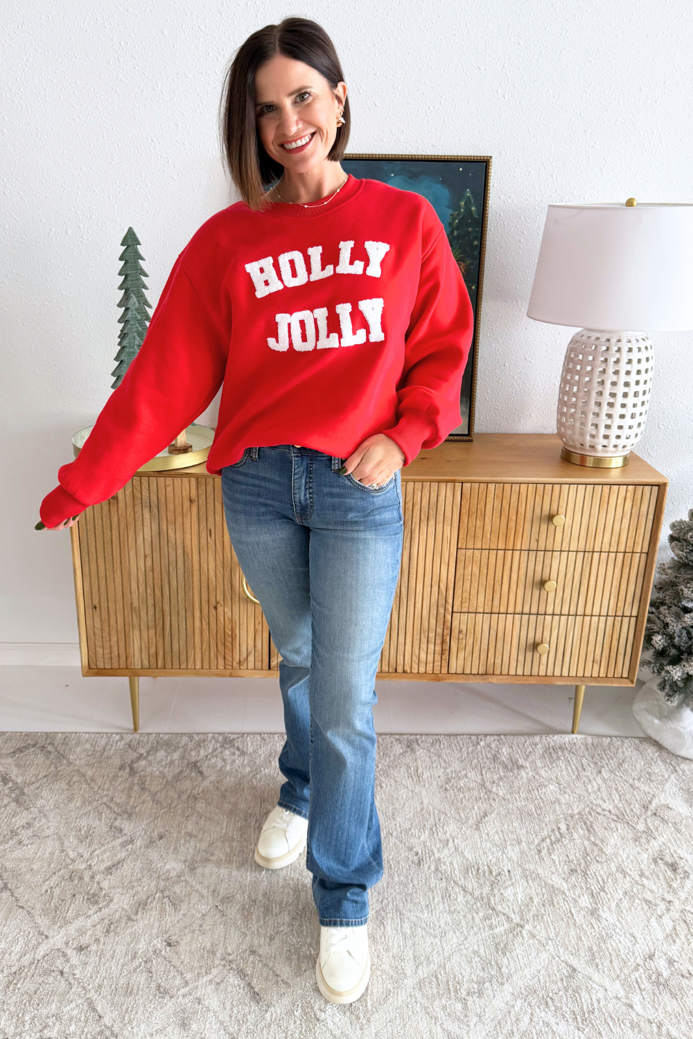 A Christmas twist on a classic silhouette, this Holly Jolly Sweatshirt is perfect for any holiday event! Pair back to dark denim and sneakers for a comfortable day with family and friends!