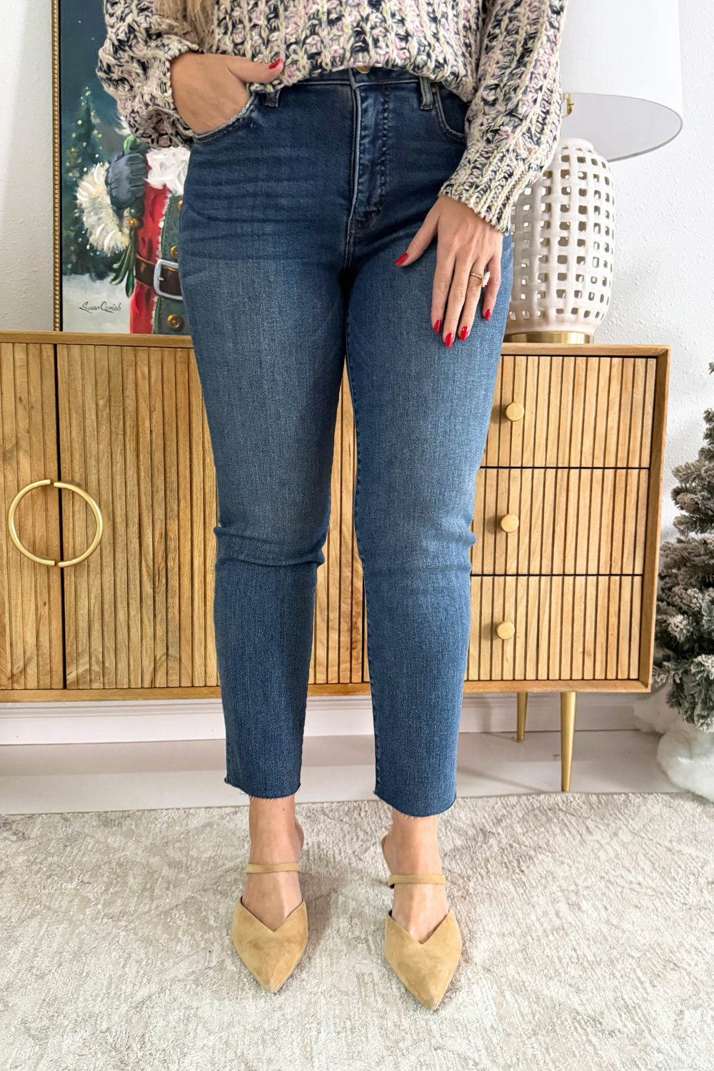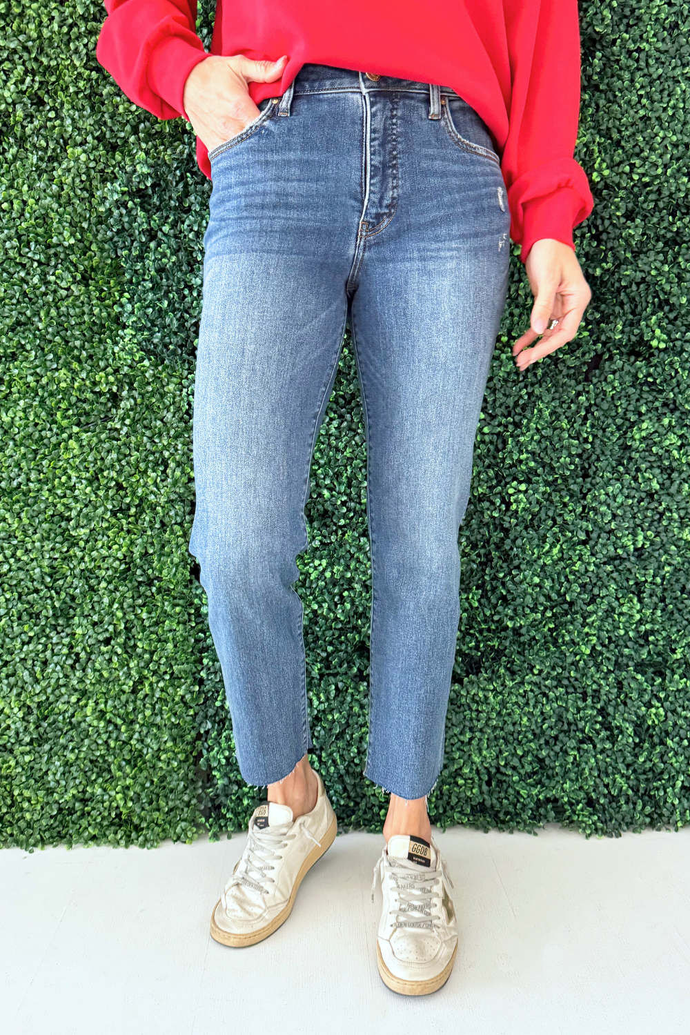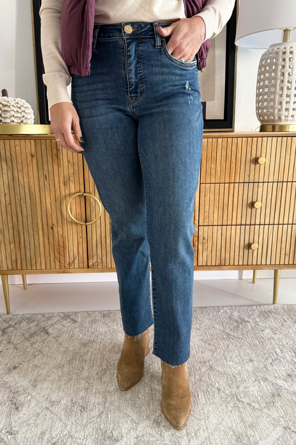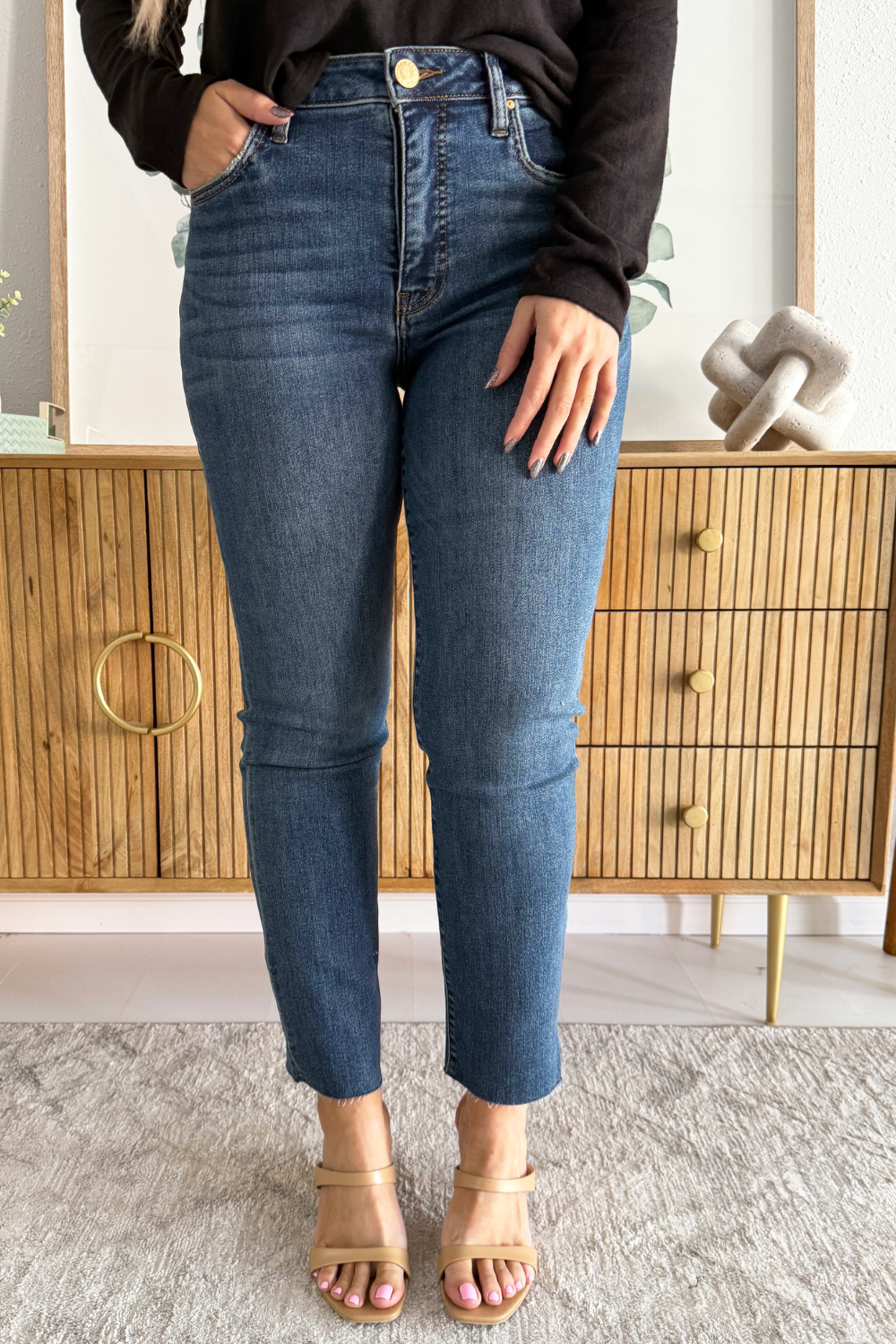 Reese High Rise Fab Ab Ankle Straight Raw Hem