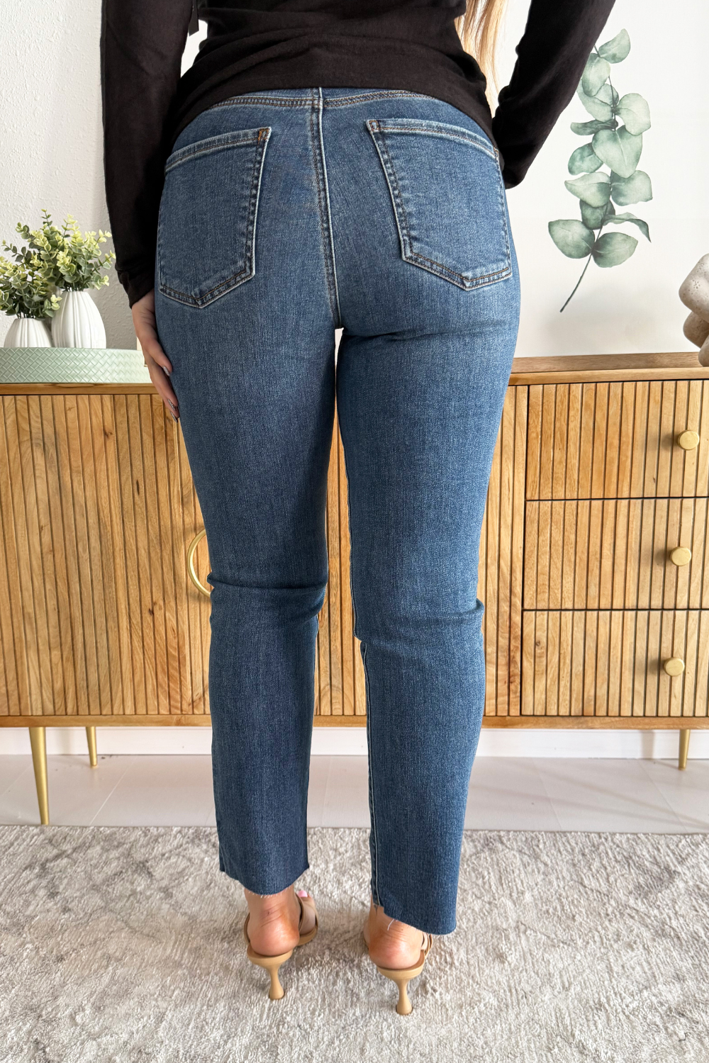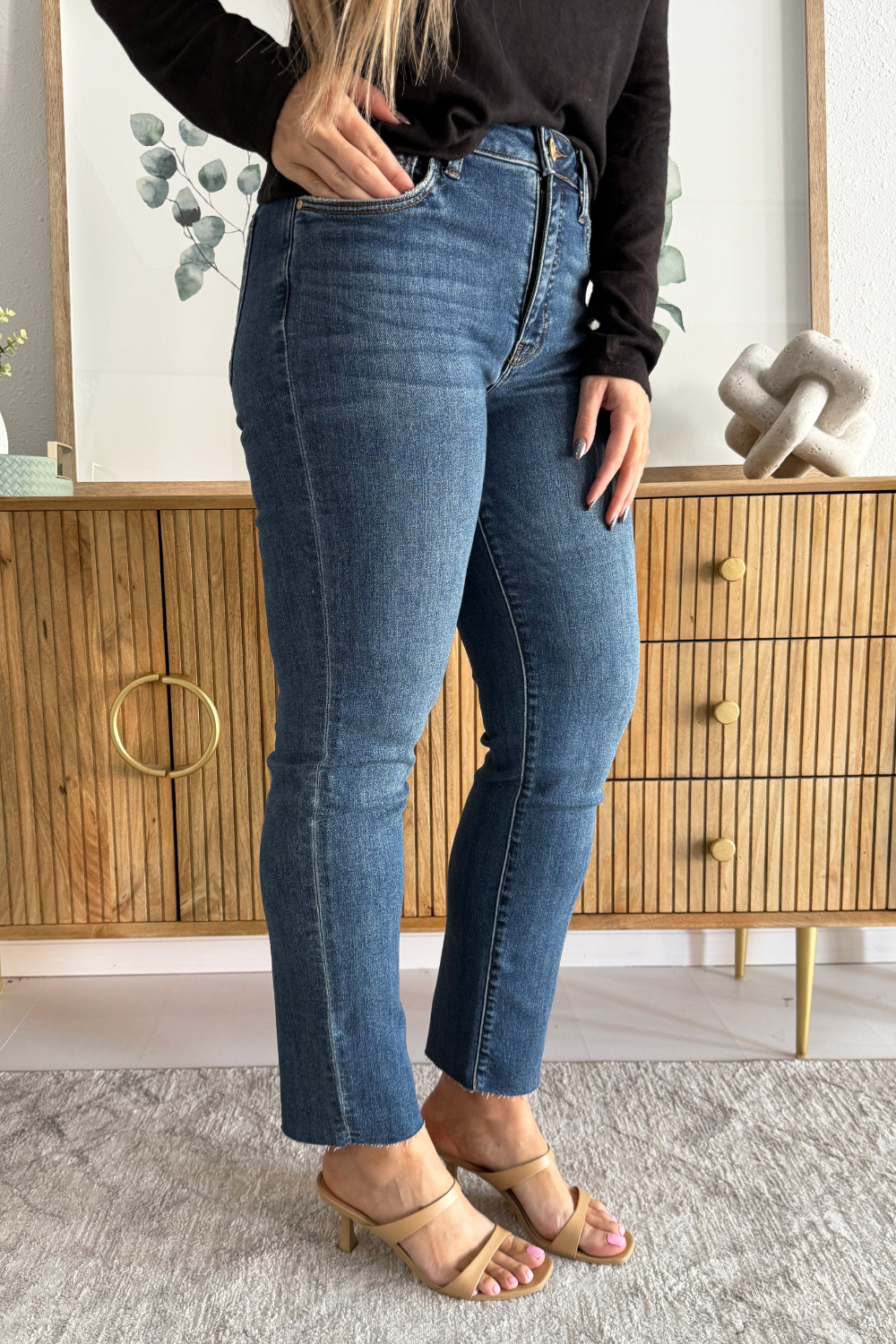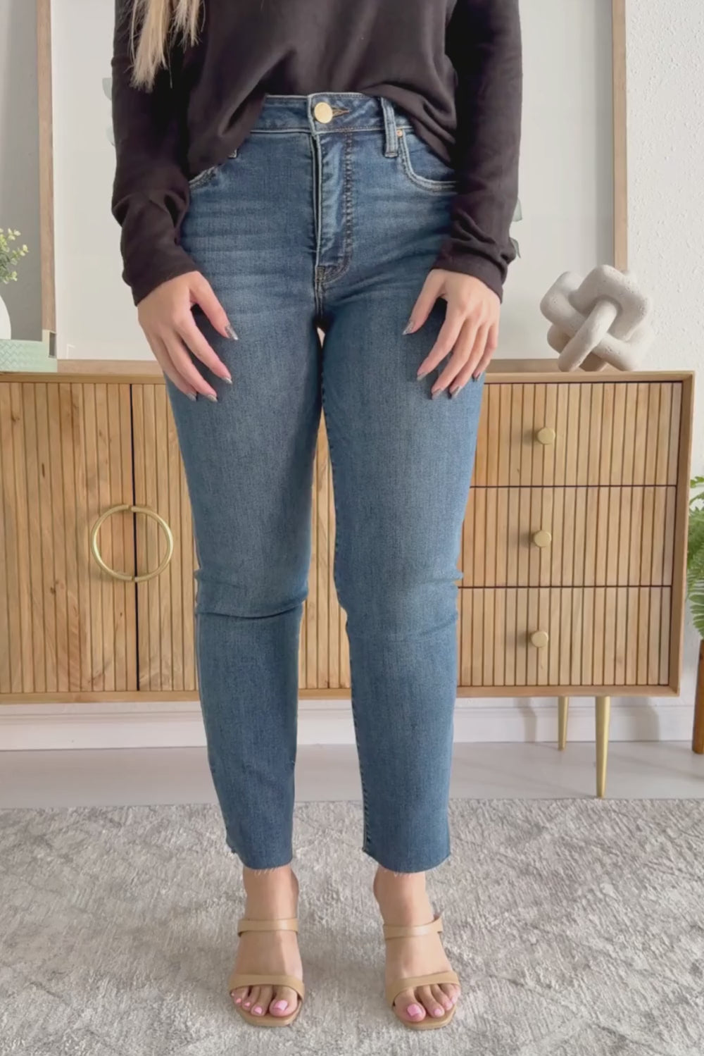 Step into effortless cool with these high-rise ankle straight jeans! Featuring Fab Ab for a flattering fit, a trendy raw hem, and a touch of distressing, they're made from a stretchy material for comfortable all-day wear. Perfect for casual looks with an edge!