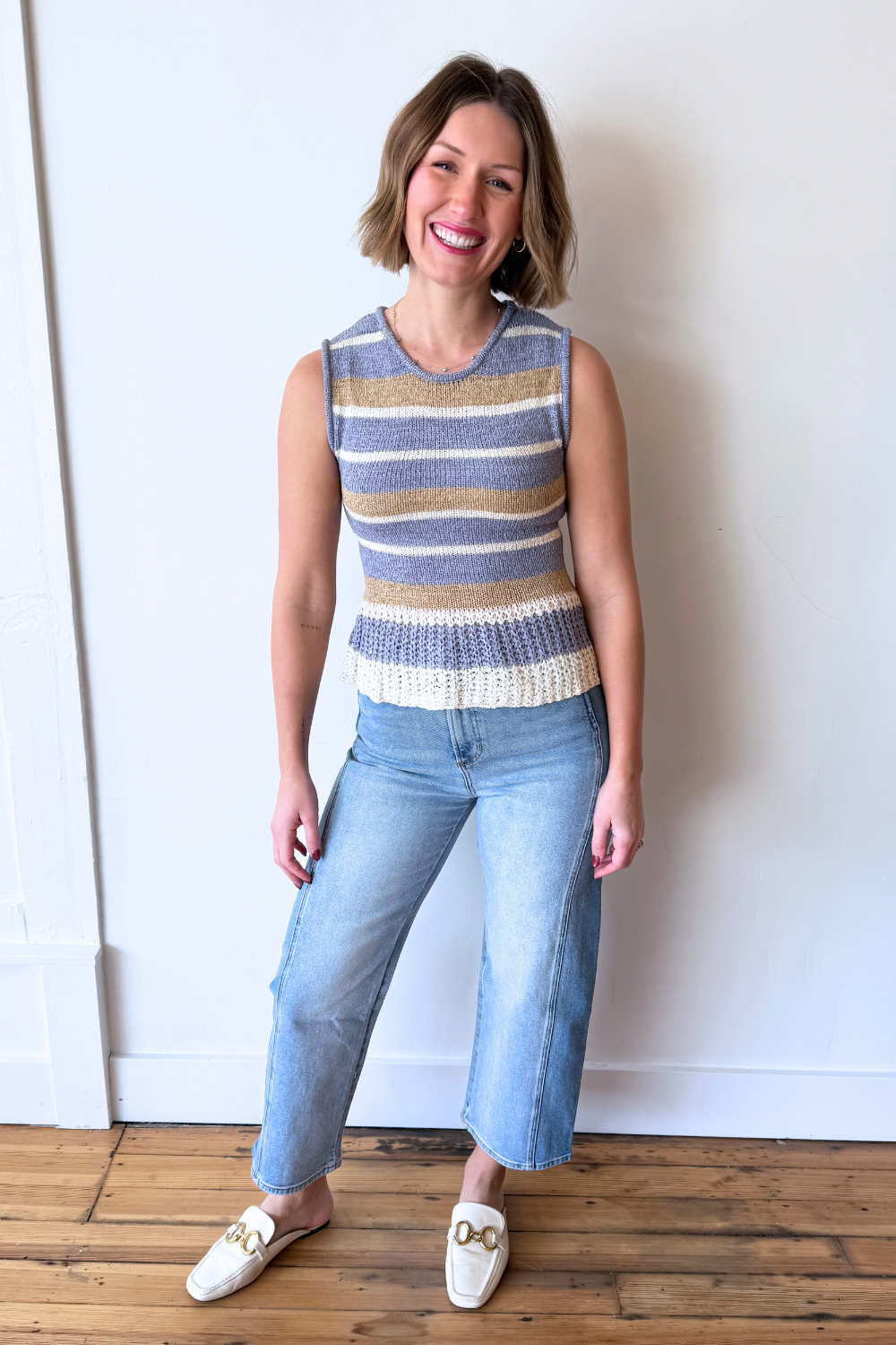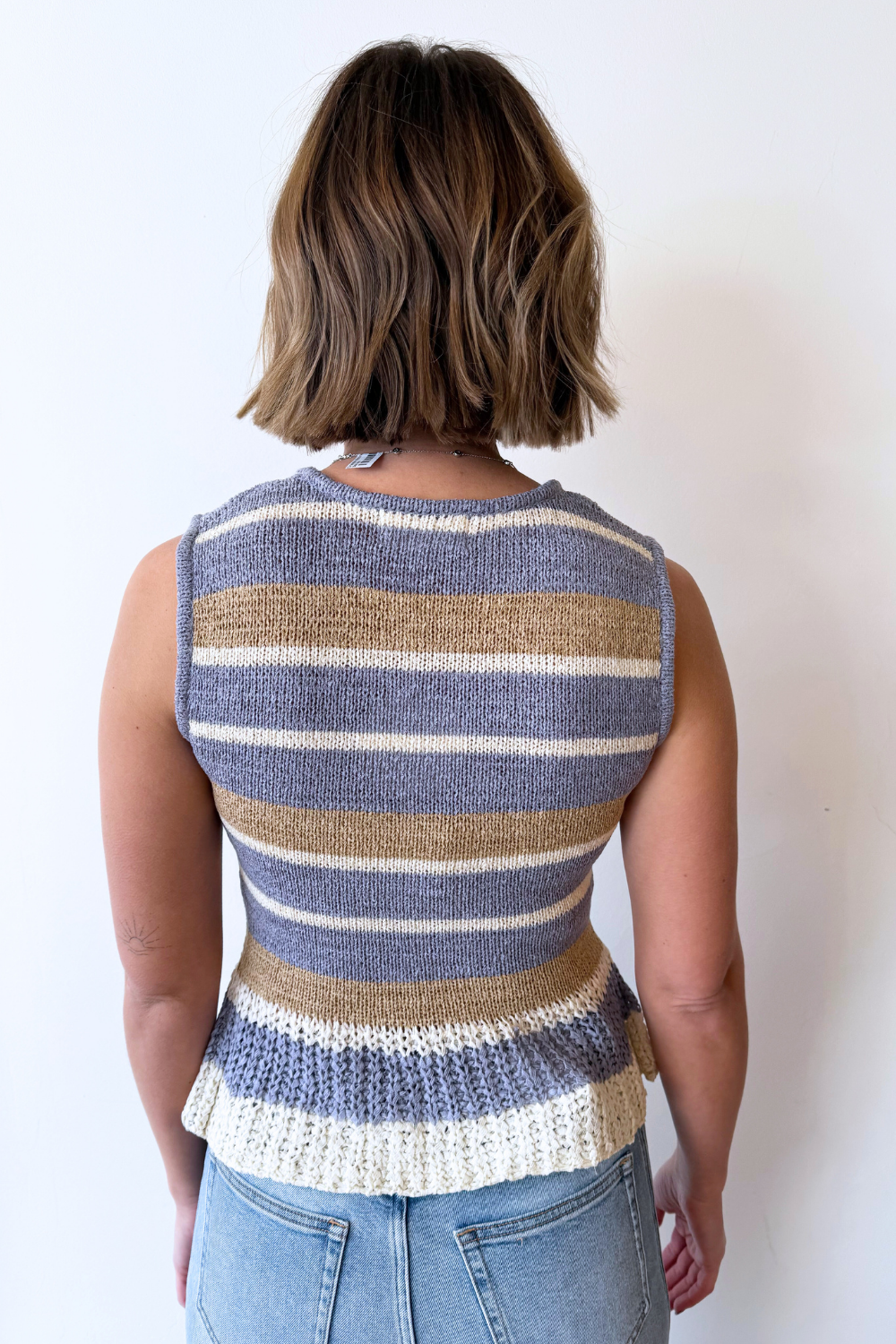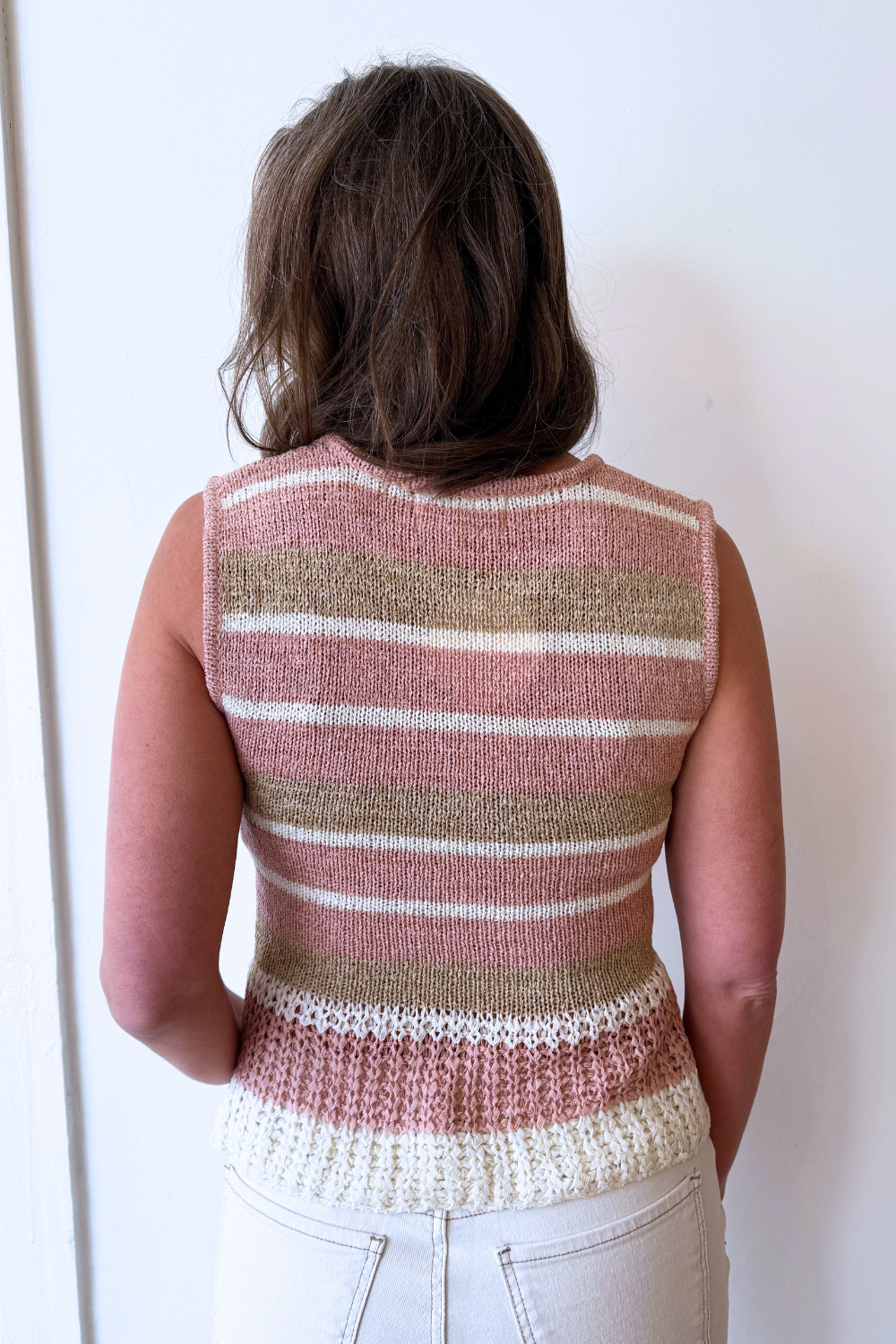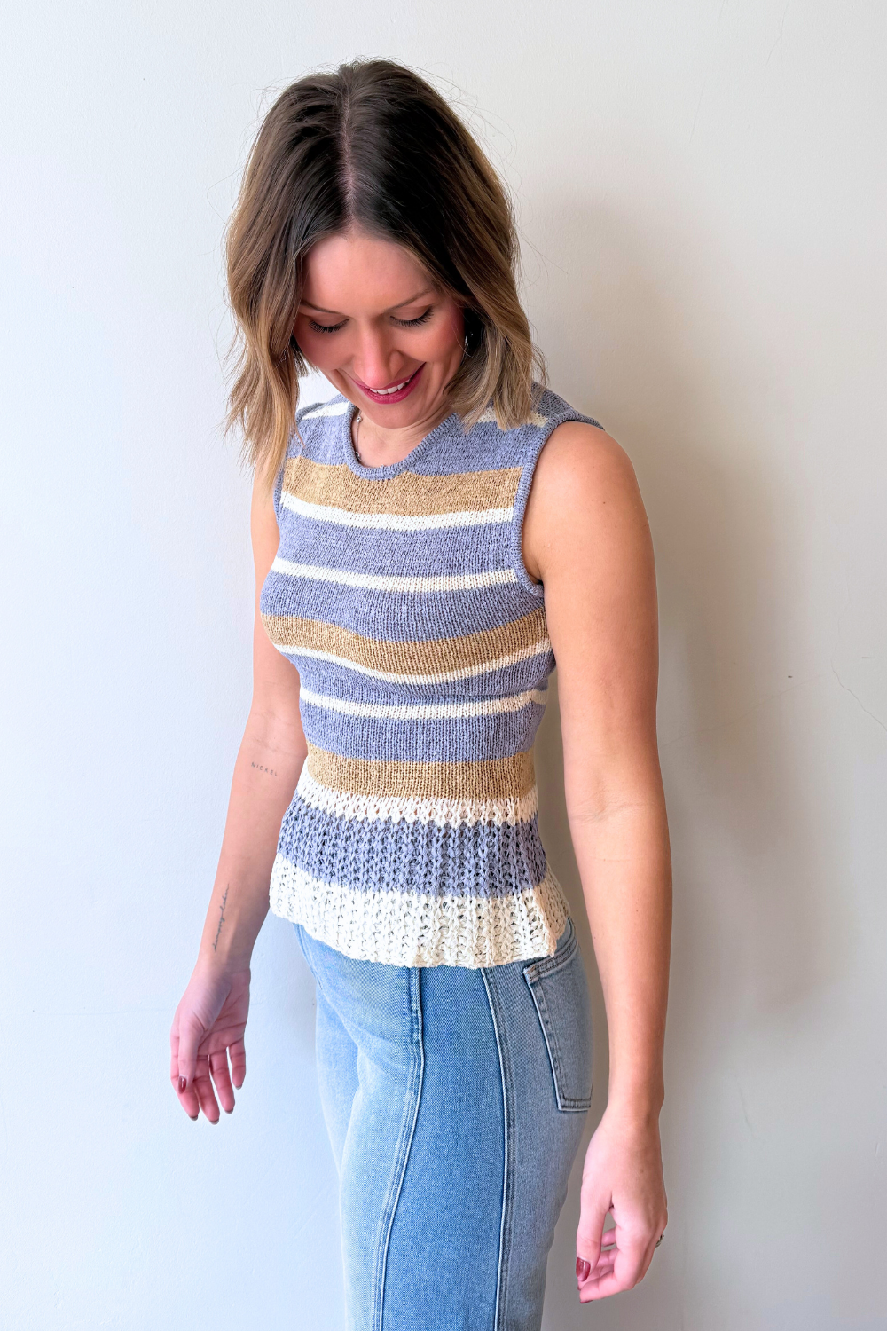 Round Neck Multi Stripe Sleeveless Sweater Top