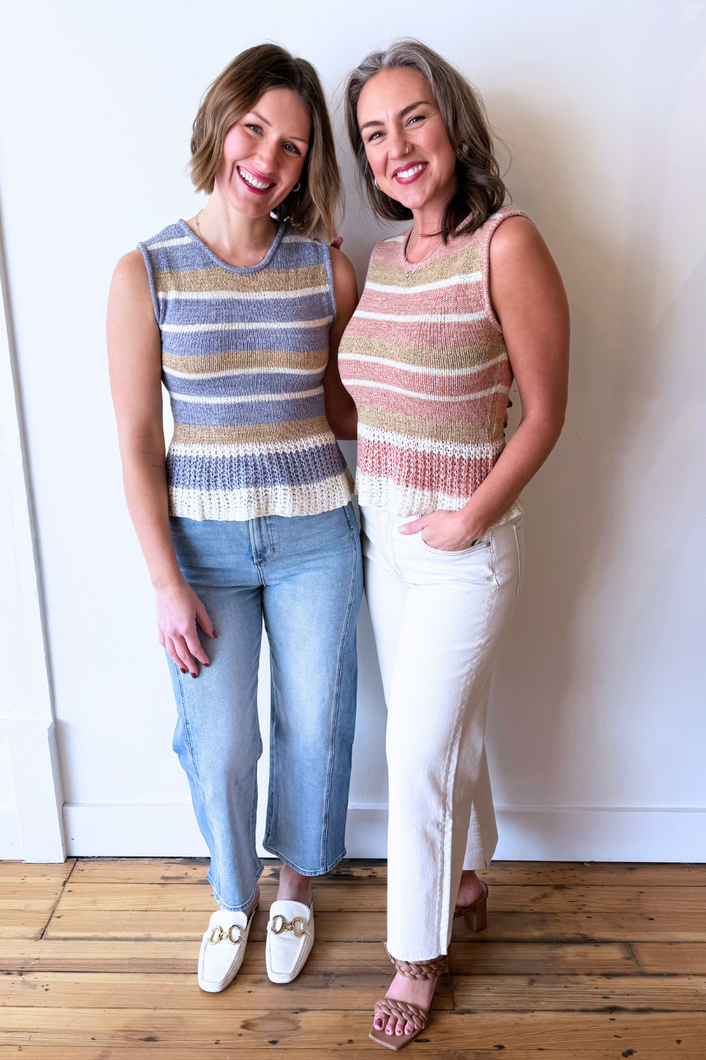 This round neck multi stripe sleeveless sweater top is a fresh take on a classic knit. Featuring a soft sweater feel with colorful stripe detailing, it’s lightweight enough for warm days while still offering that cozy texture you love. Perfect for pairing with denim or layering under a jacket for an easy, put-together look.