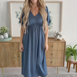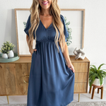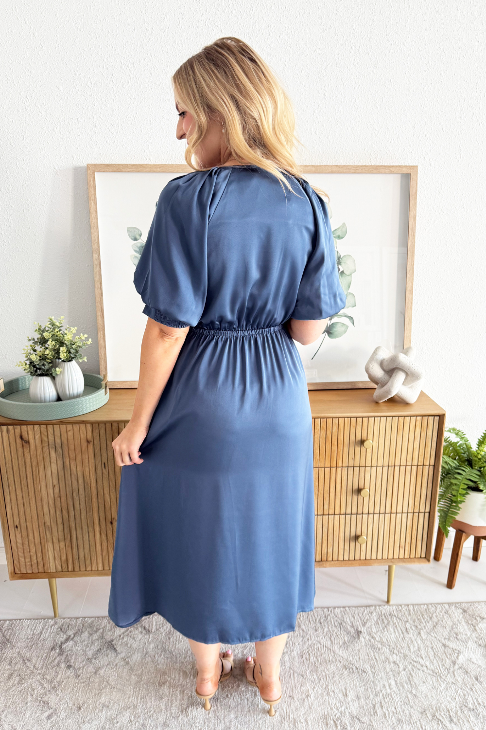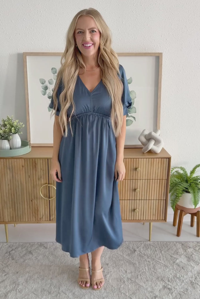 Perfect for any occasion, this dress will have your reaching for it again! The balloon sleeve detail, v-neckline, and elastic waistband adds elegance to this dress! Grab a pair of nude heels and take this outfit anywhere!